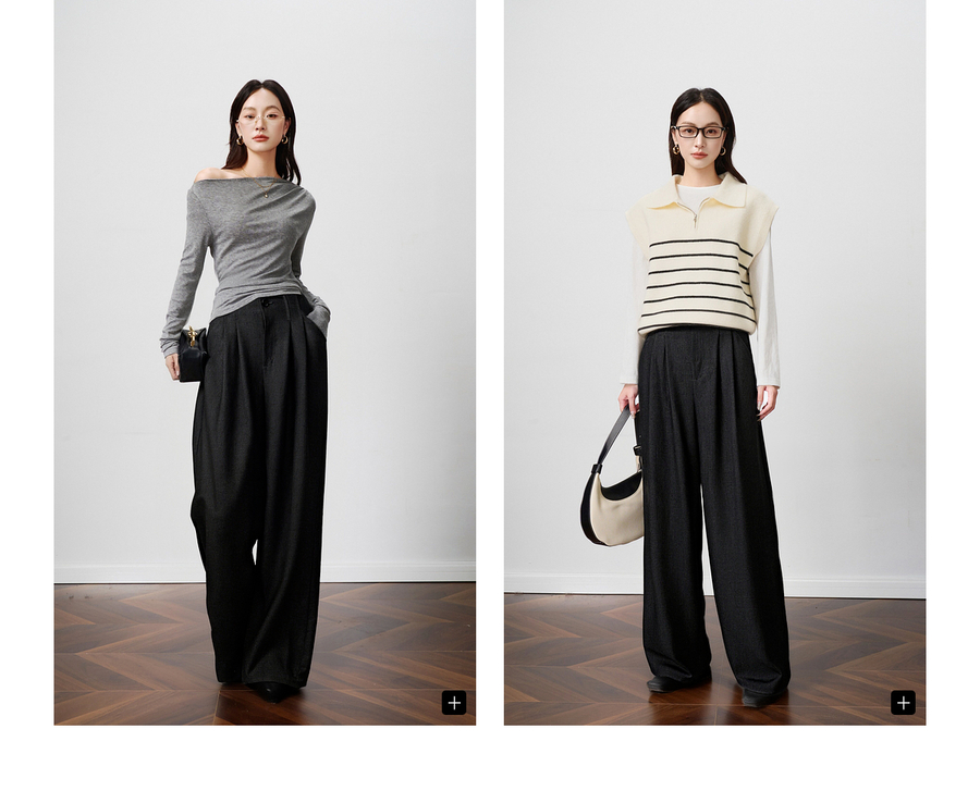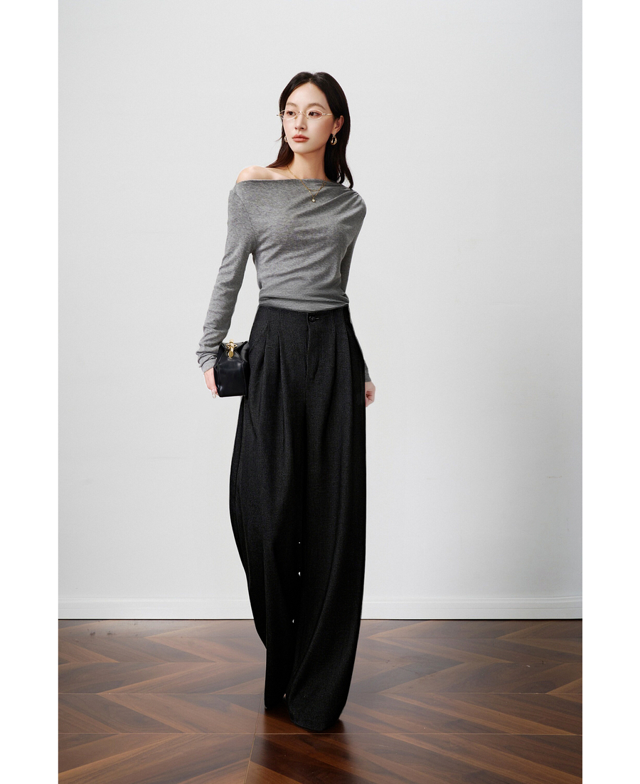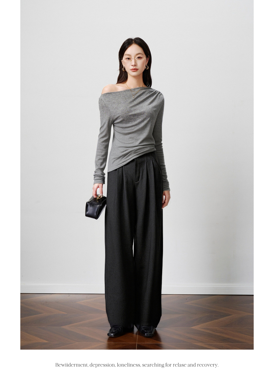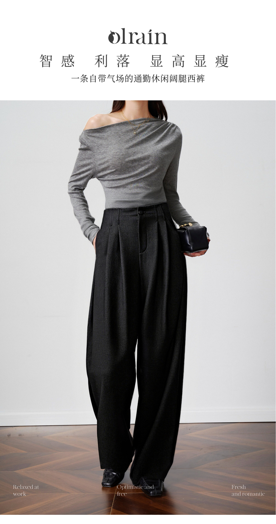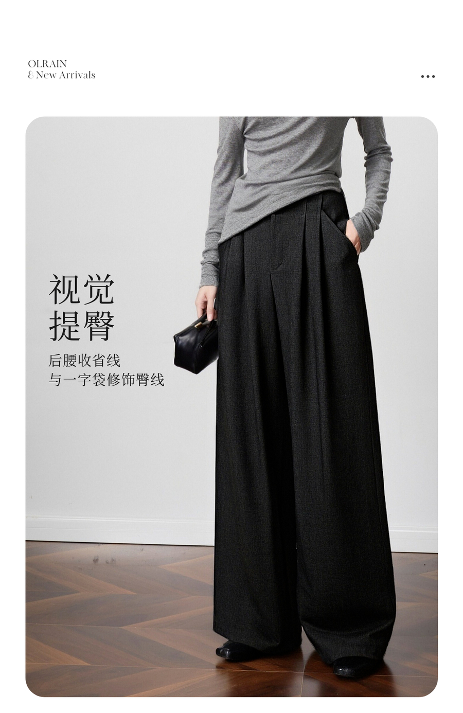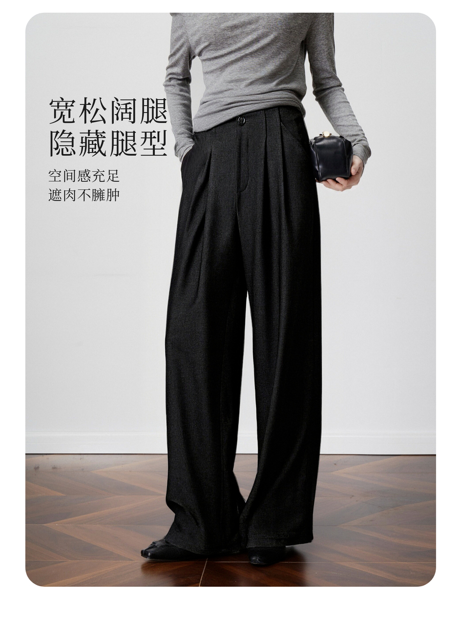 OLrain欧芮儿2025新款女秋季灰色阔腿西裤高腰显瘦拖地休闲长裤子