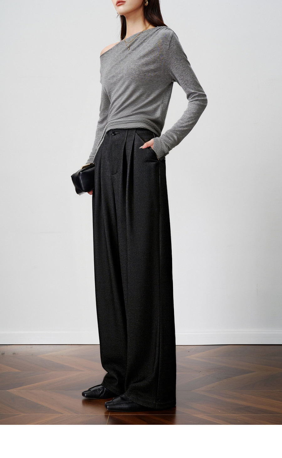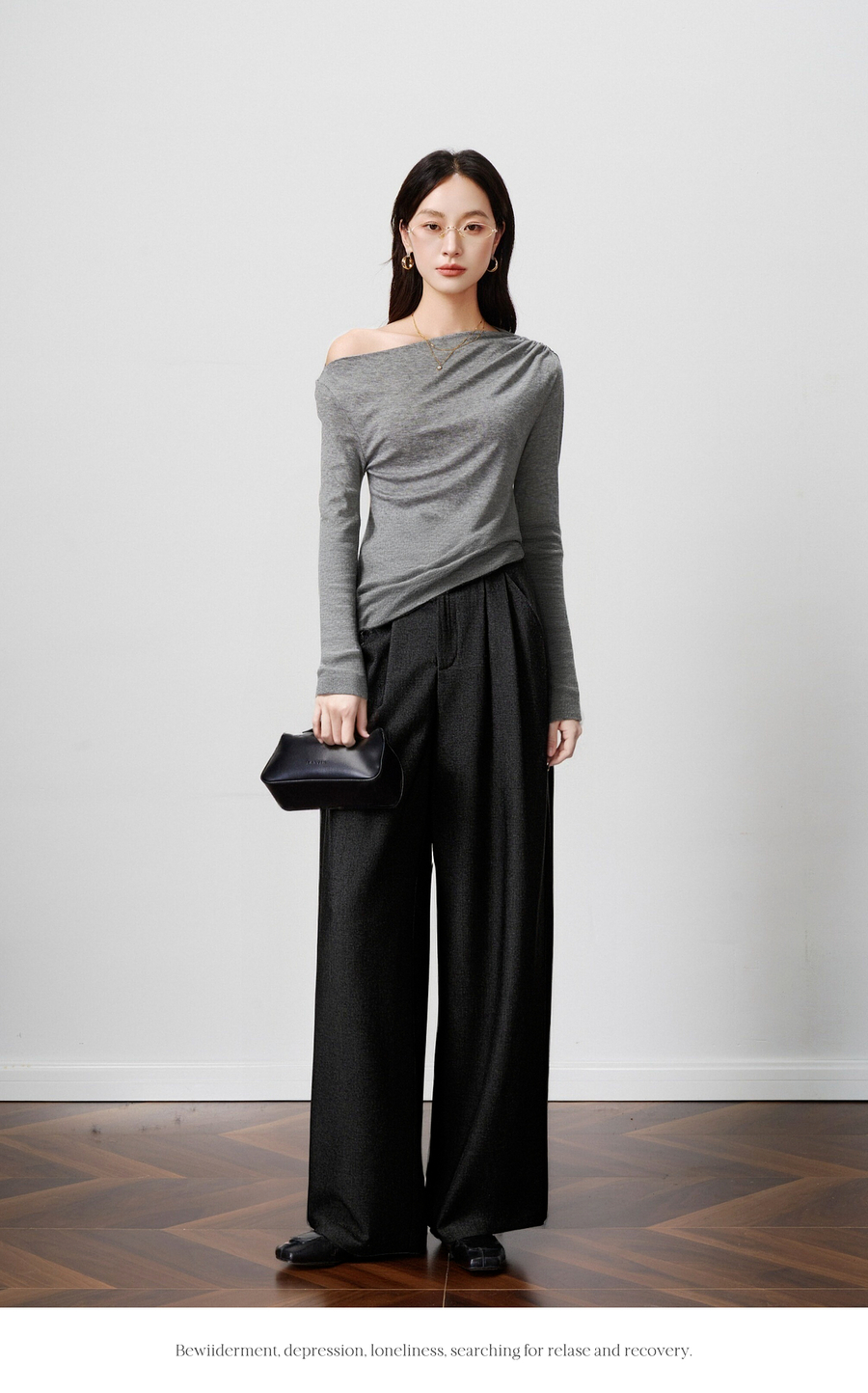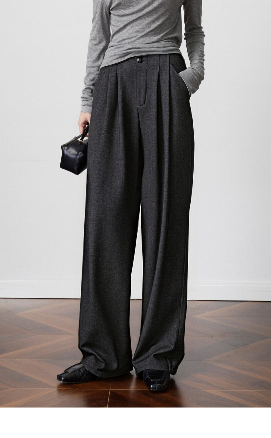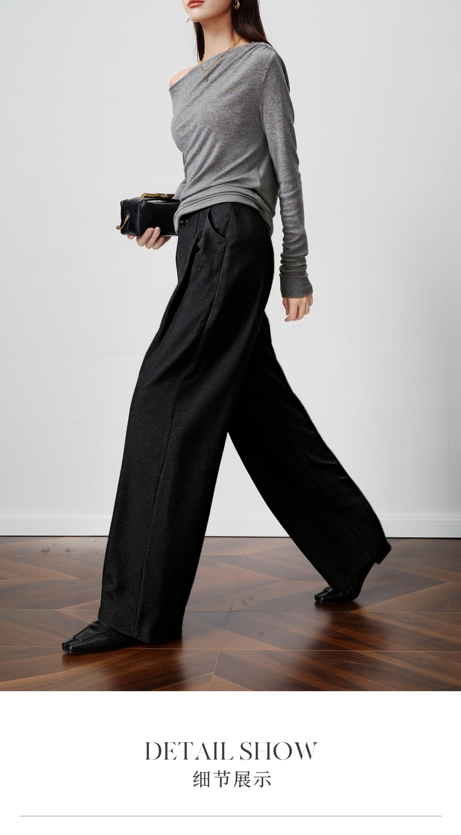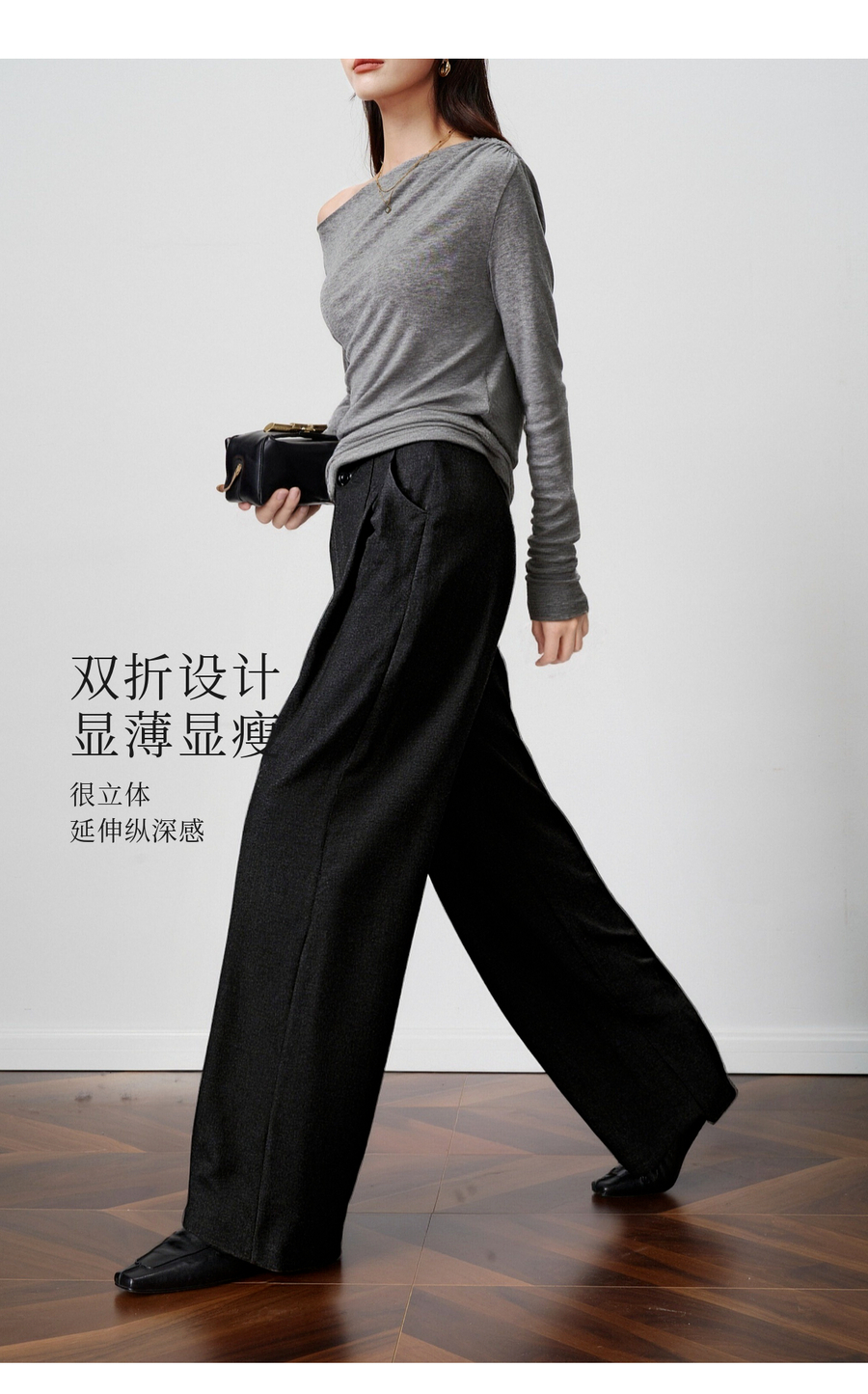 OLrain欧芮儿2025新款女秋季灰色阔腿西裤高腰显瘦拖地休闲长裤子