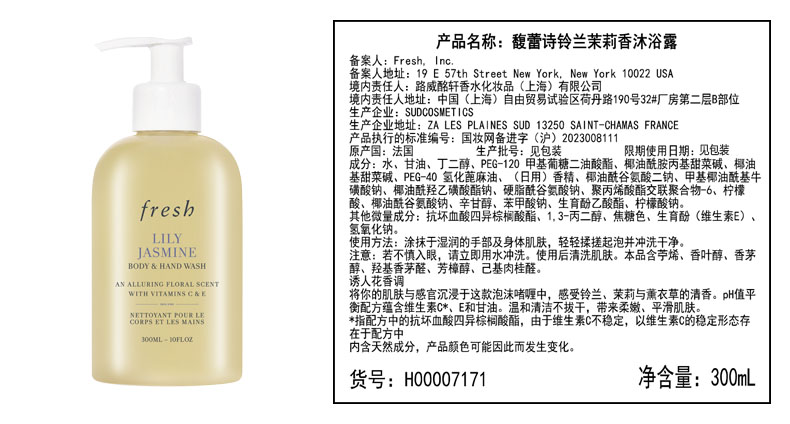 Fresh馥蕾诗 铃兰茉莉沐浴露300ml