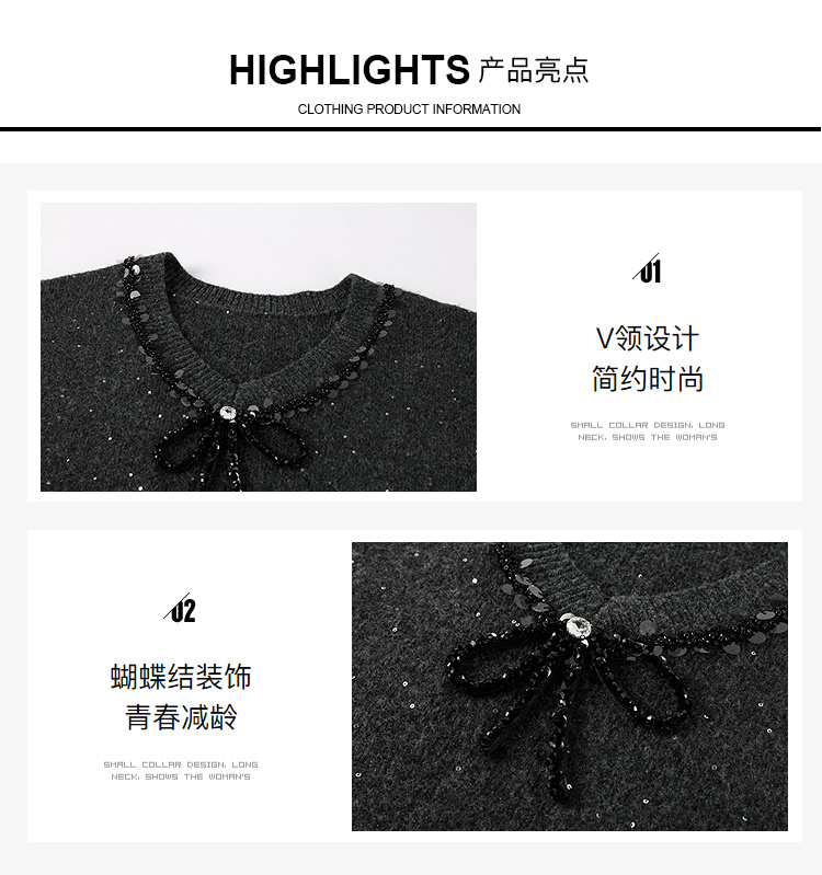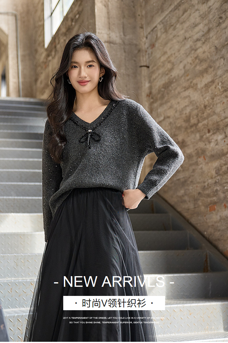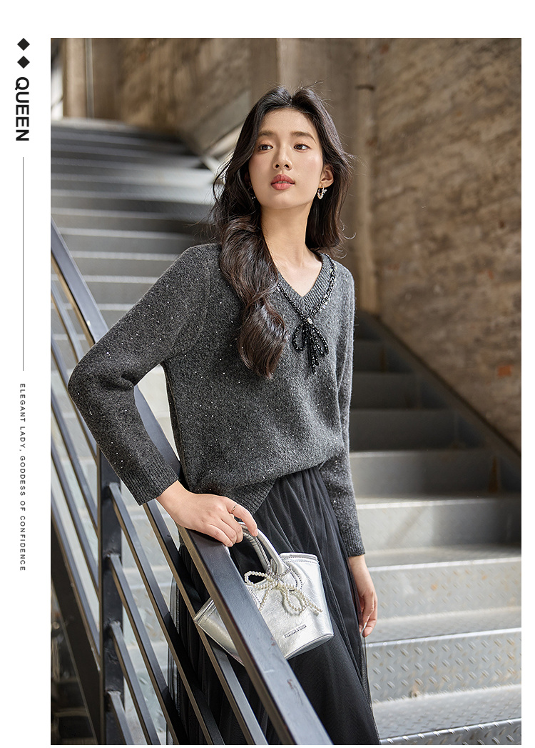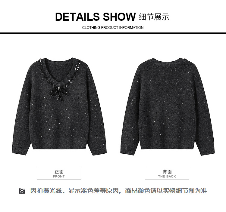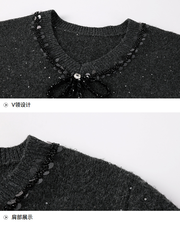 奢姿大码女装2025冬季时尚亮片装饰V领针织衫胖妹妹气质温柔上衣9854691136