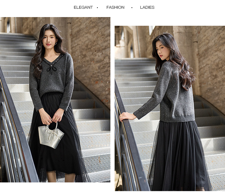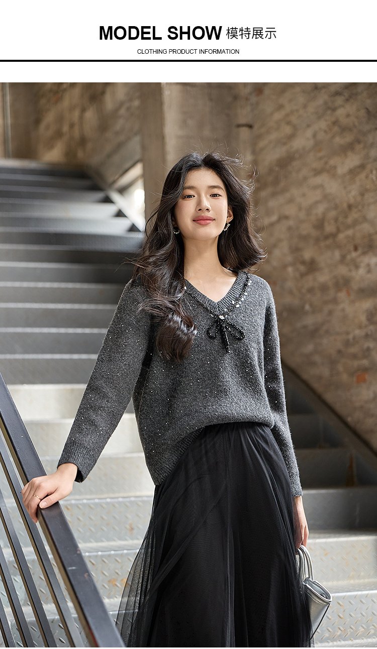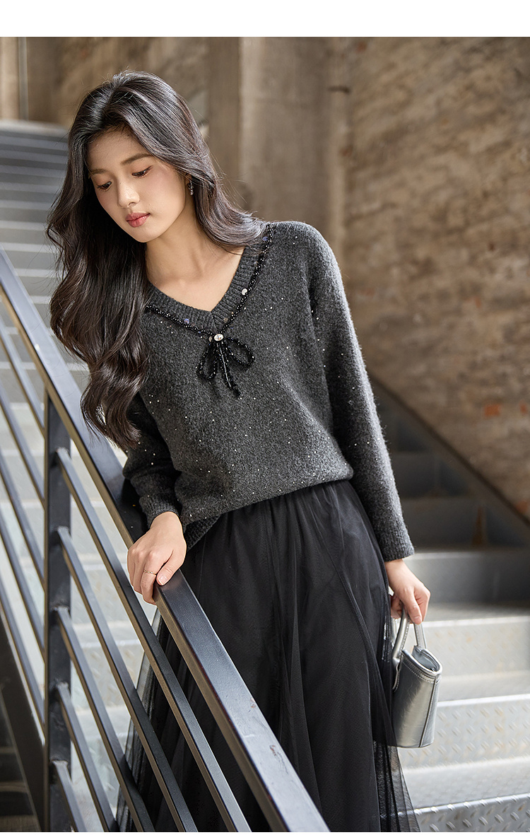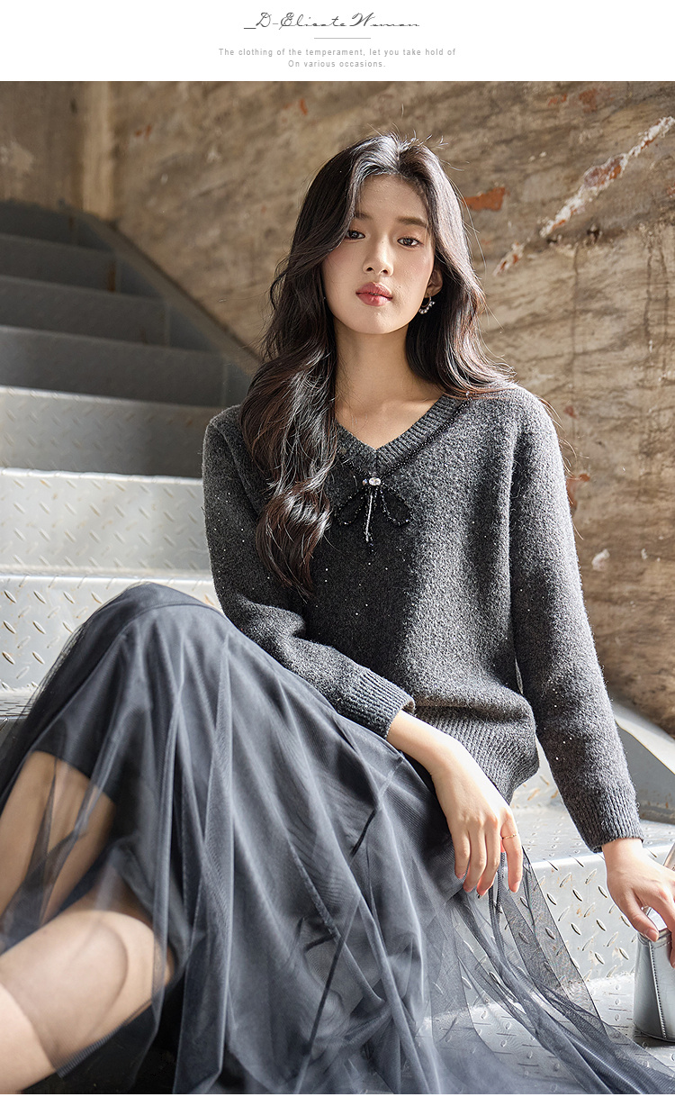 奢姿大码女装2025冬季时尚亮片装饰V领针织衫胖妹妹气质温柔上衣9854691136