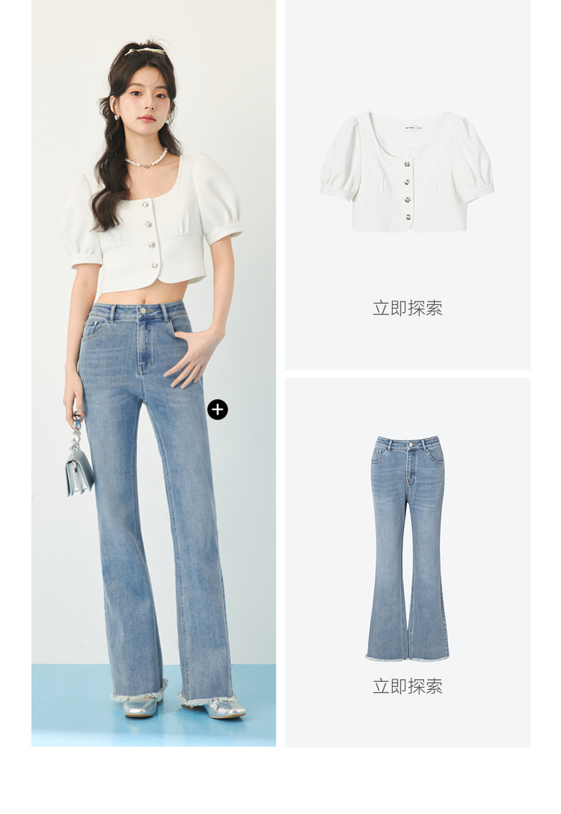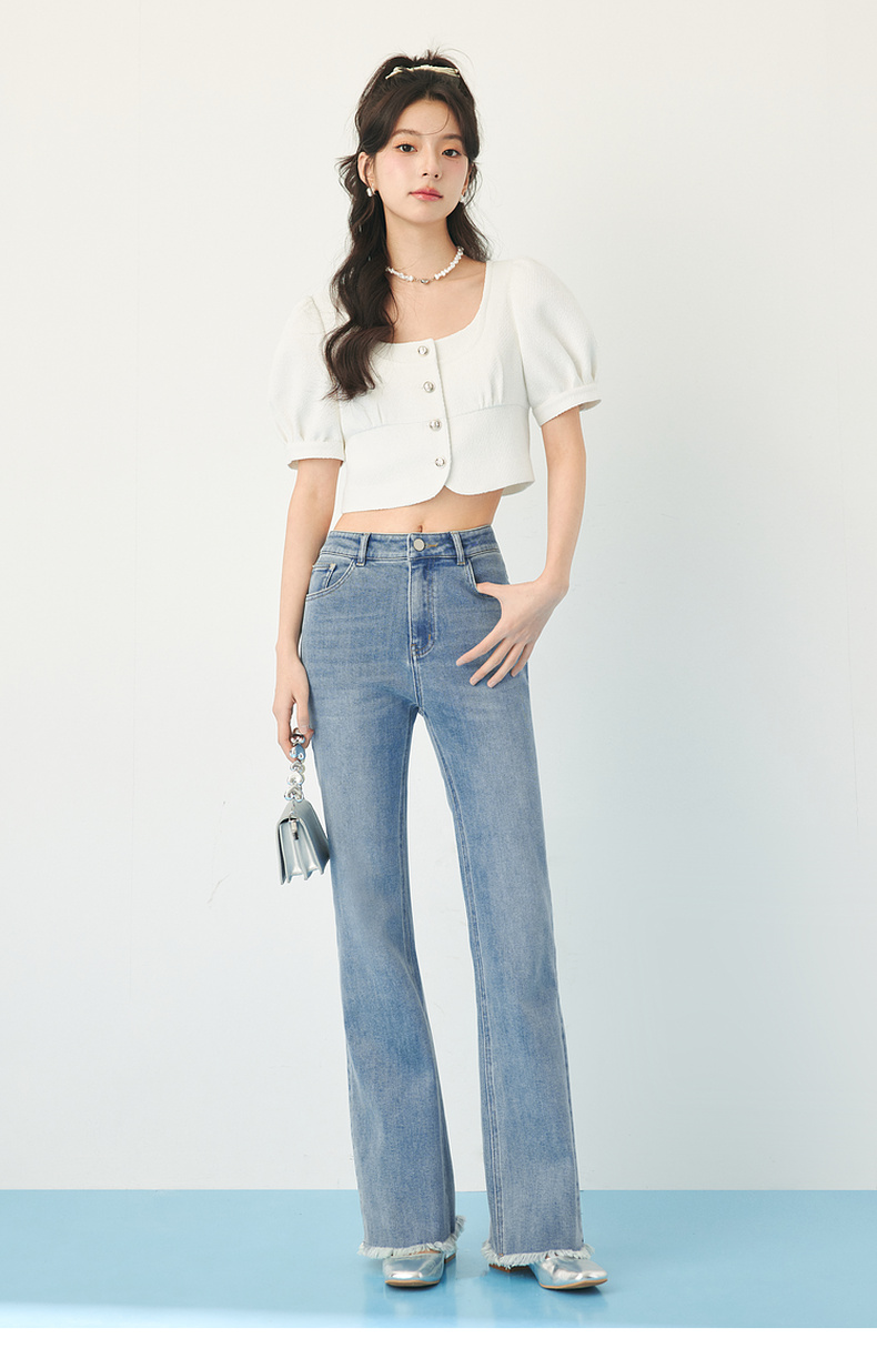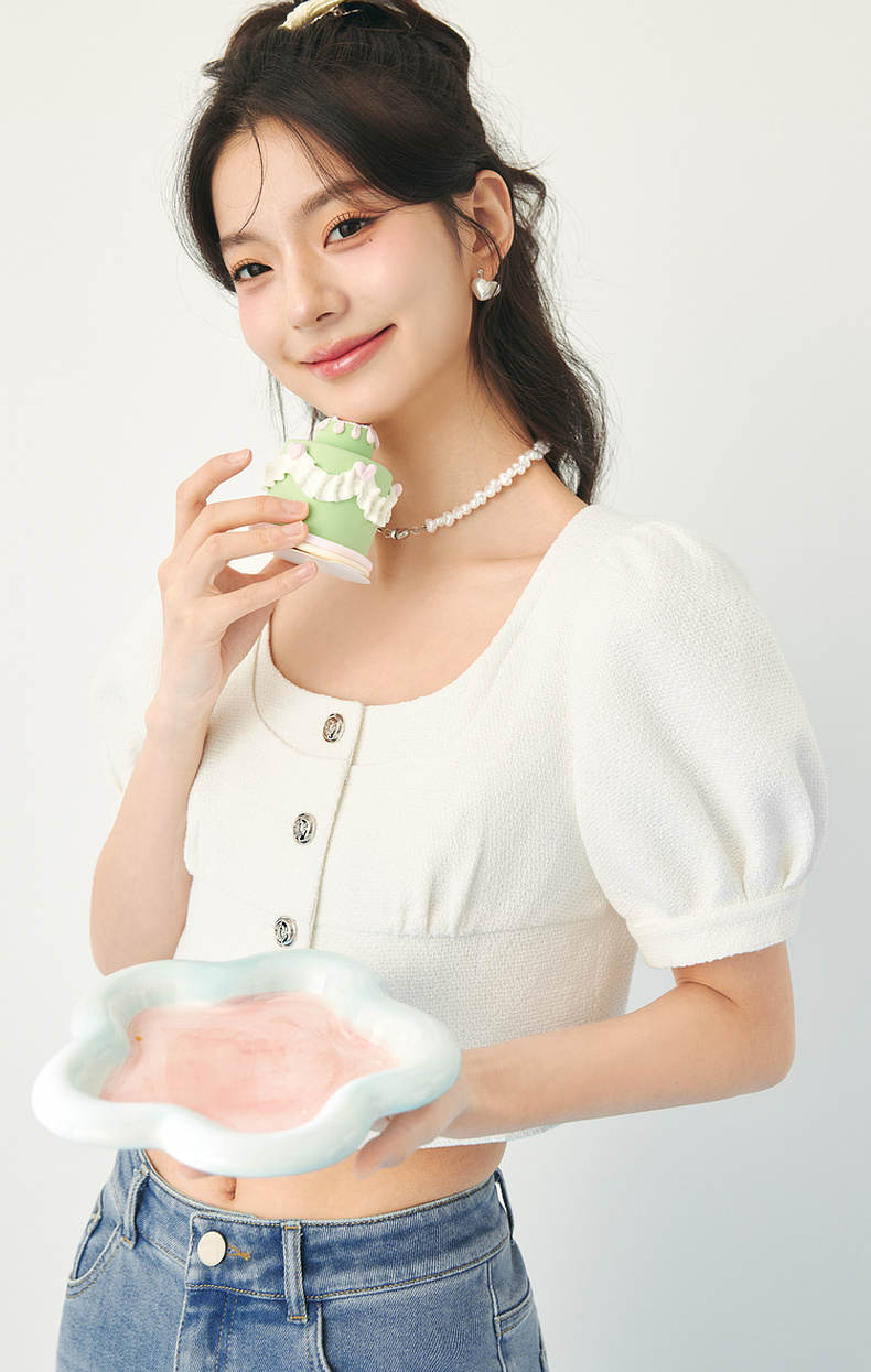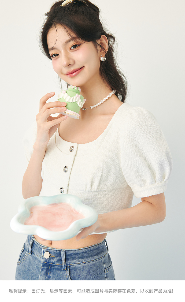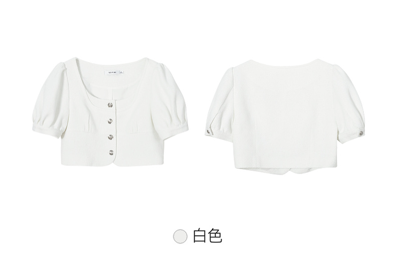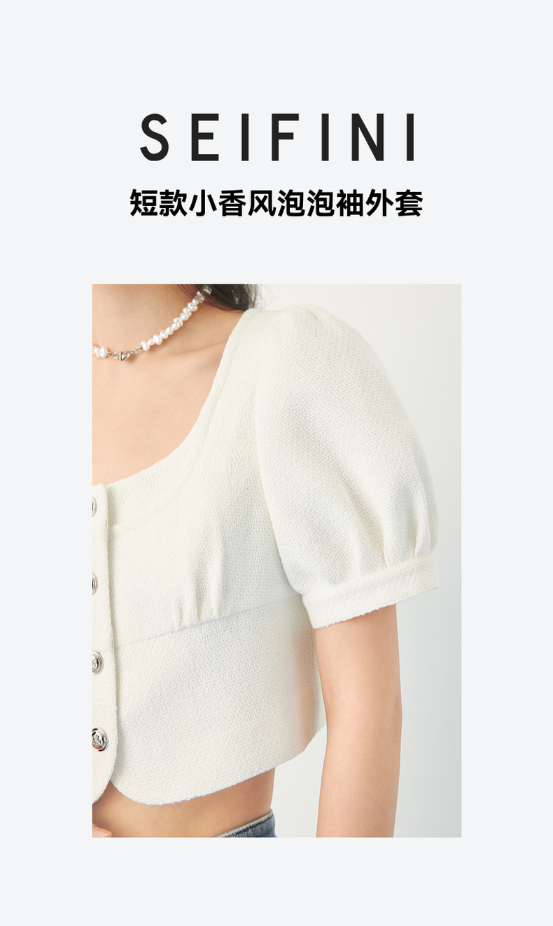 【严选】诗凡黎春短款小香风泡泡袖衬衫SF3420291