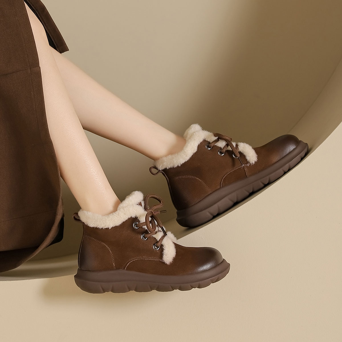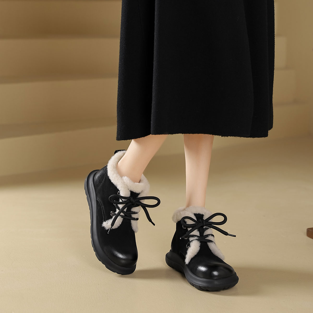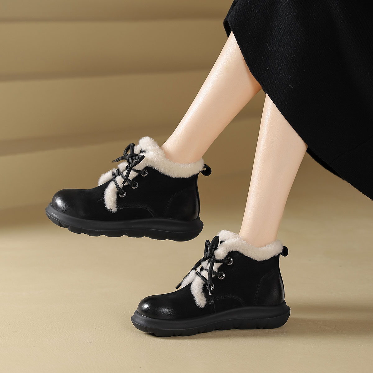 西村名物2024年冬季新款加毛保暖超轻厚底防滑系带马丁靴T24DS48361