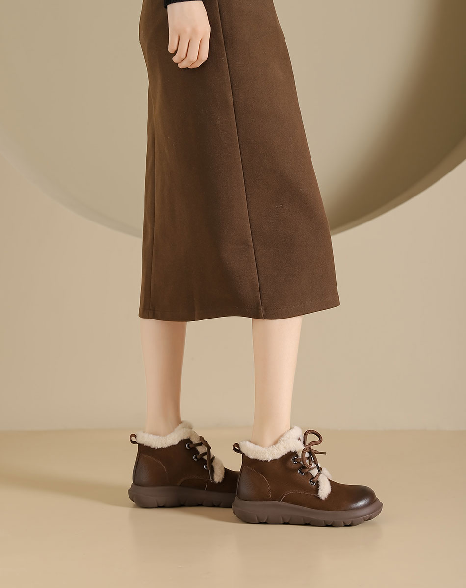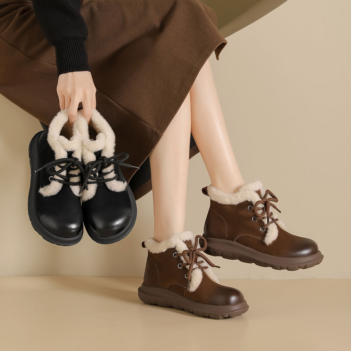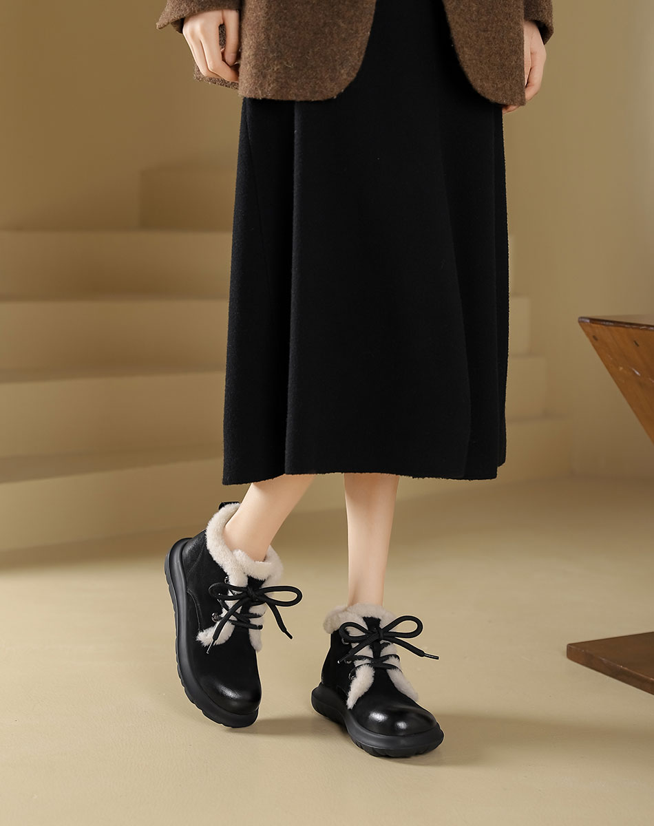 西村名物2024年冬季新款加毛保暖超轻厚底防滑系带马丁靴T24DS48361