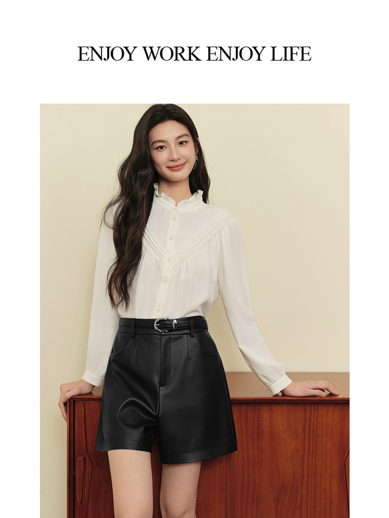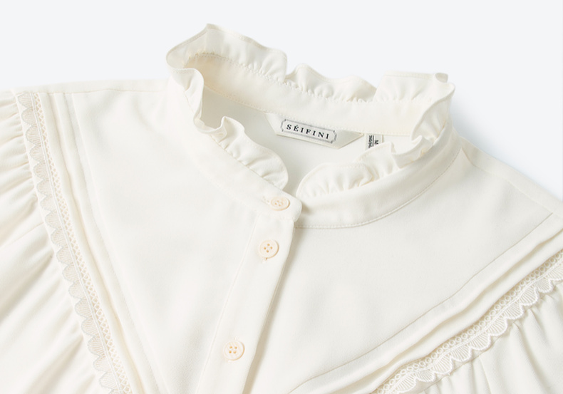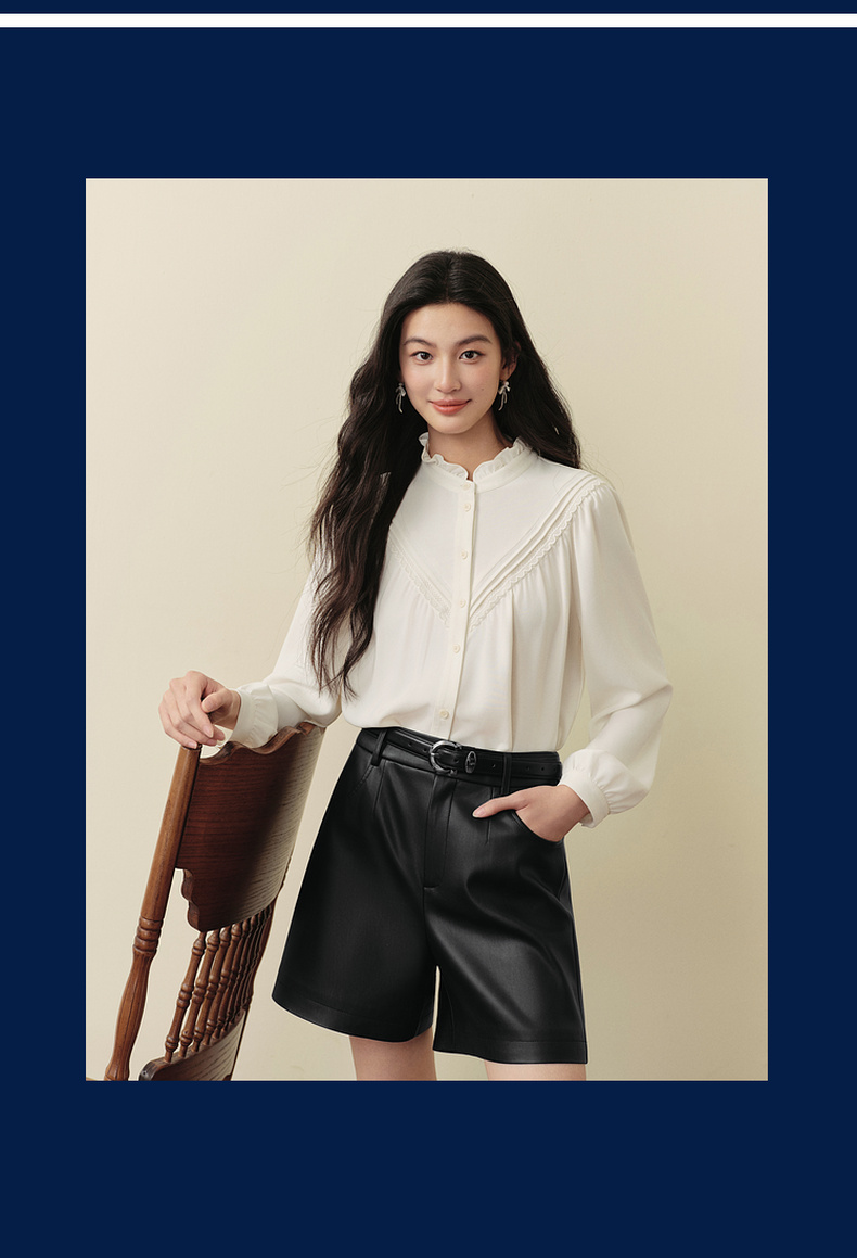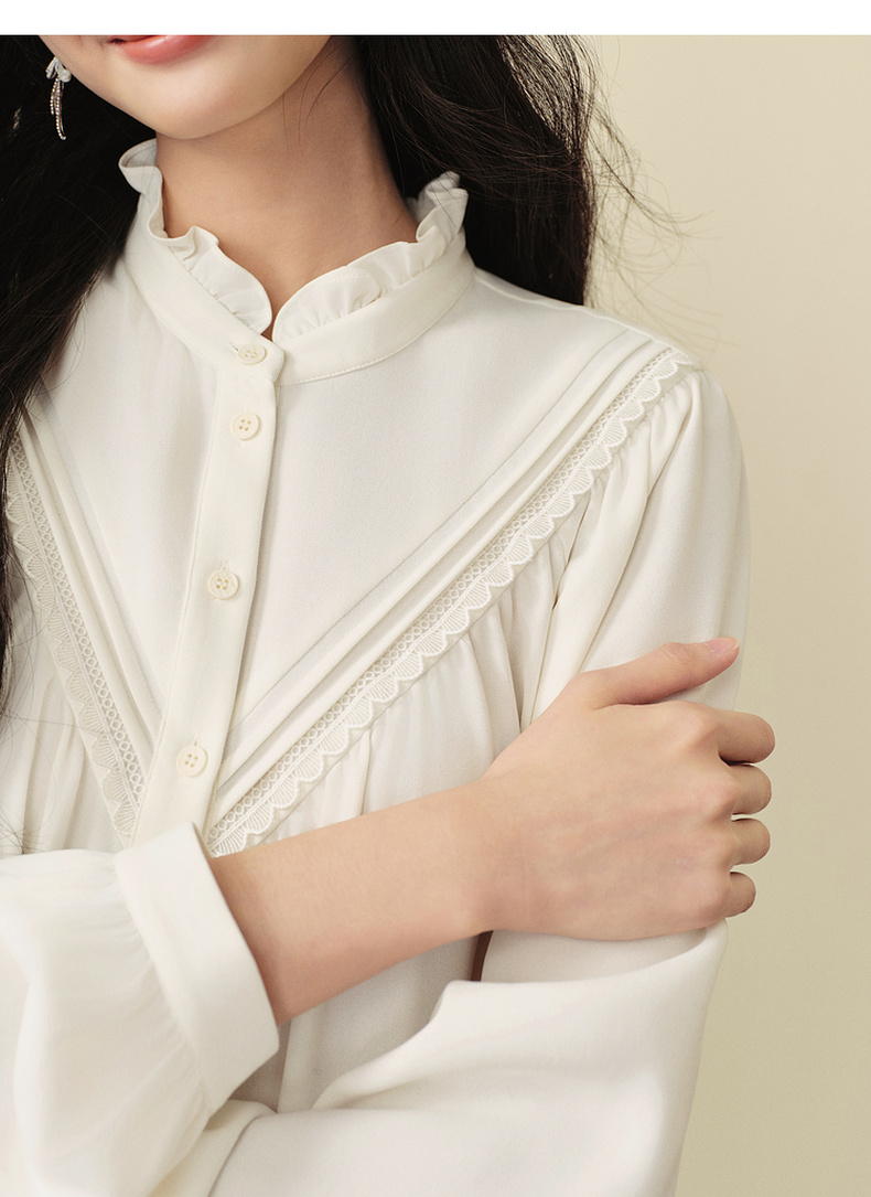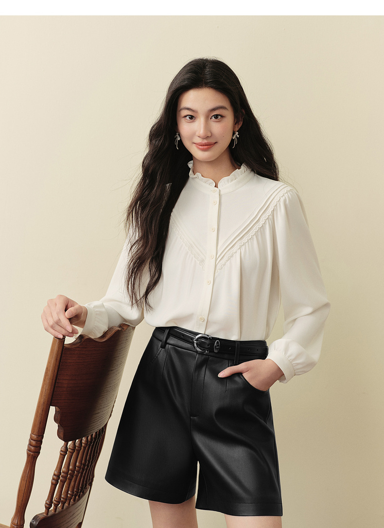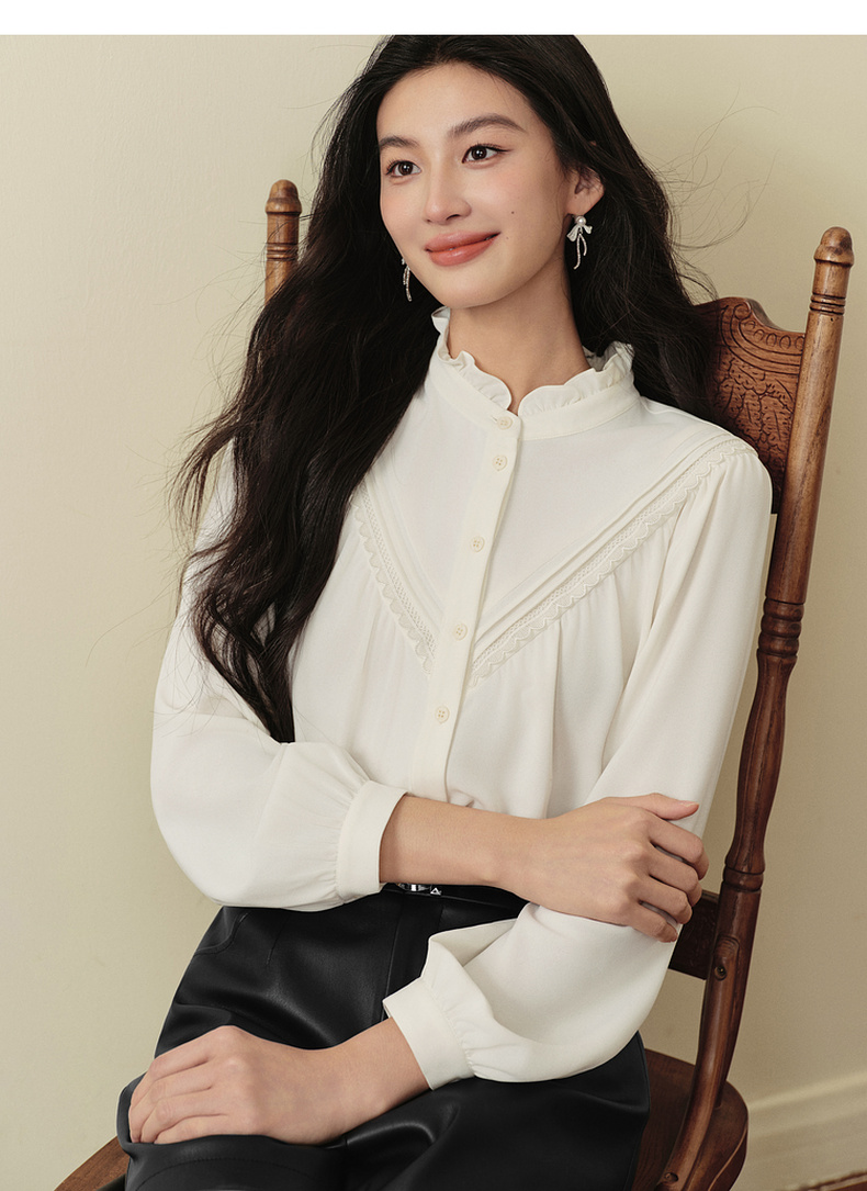 【严选】诗凡黎法式木耳领花边衬衫2025冬新款复古别致气质叠穿打底衬衣女7GA320721