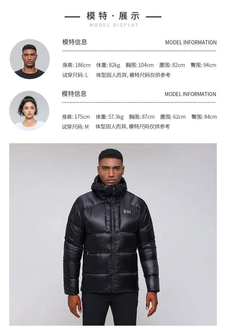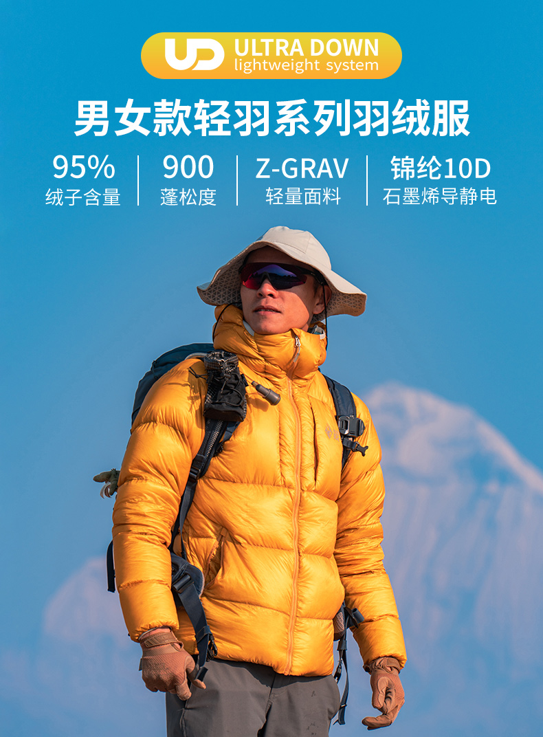 黑冰冬季900蓬羽绒服男女户外防寒保暖轻量鹅绒连帽羽绒外套