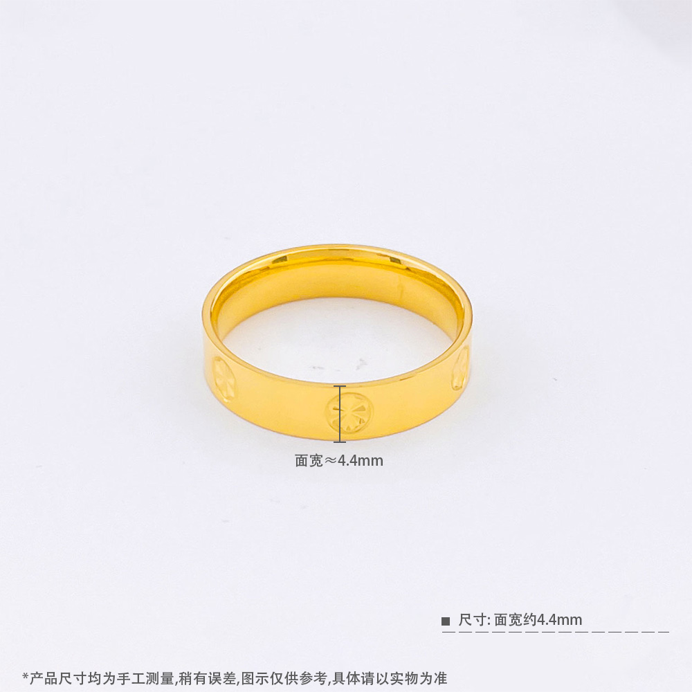 【限时克减150元】足金999.9 【精品】实心固口戒指镜面金米字纹圈戒(面宽约4.1-4.5mm)(ANWZJZ00002)(预售产品下单后不退款不退货不换货不补差价