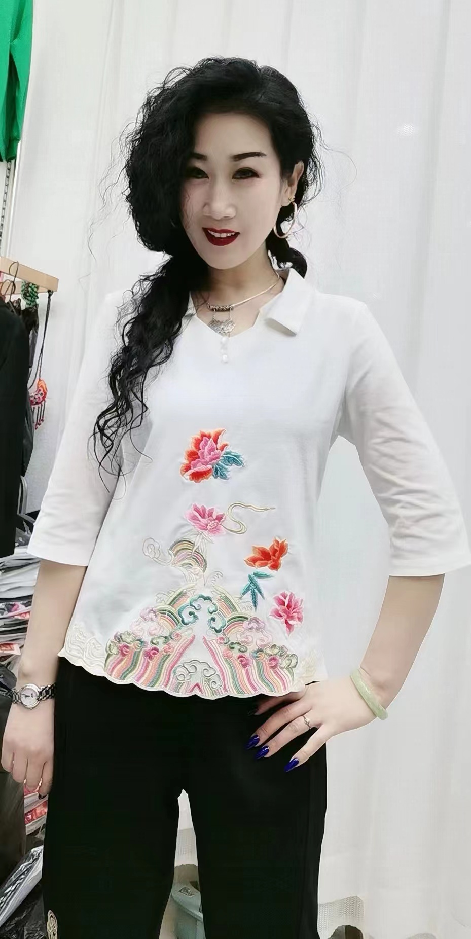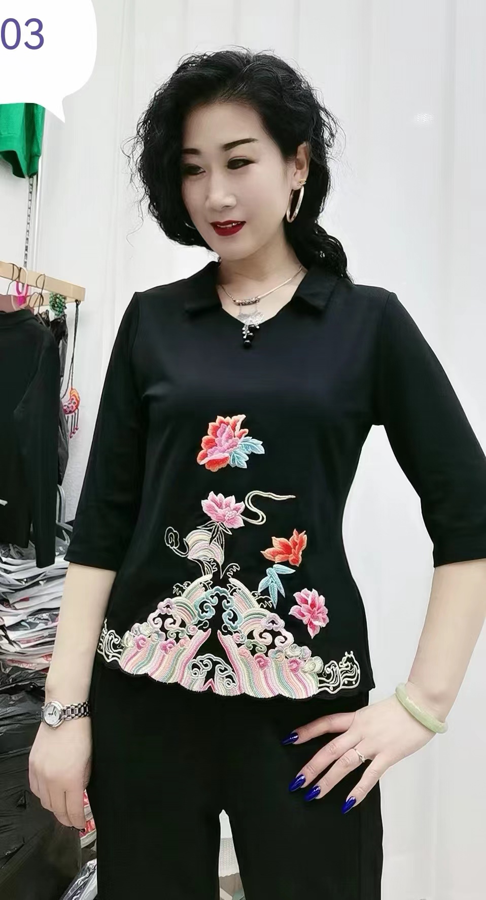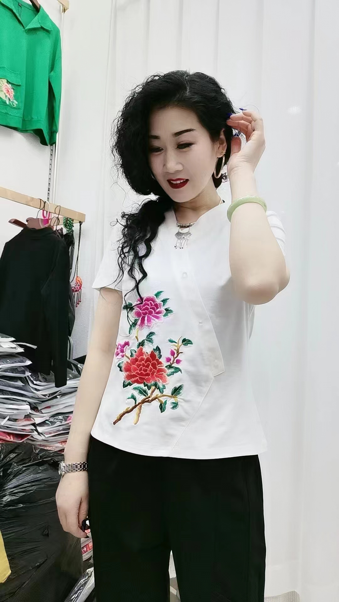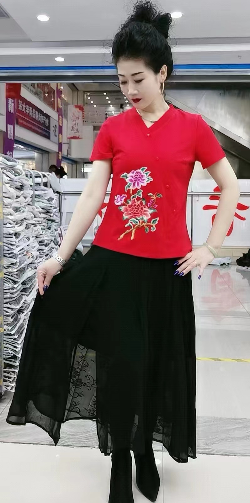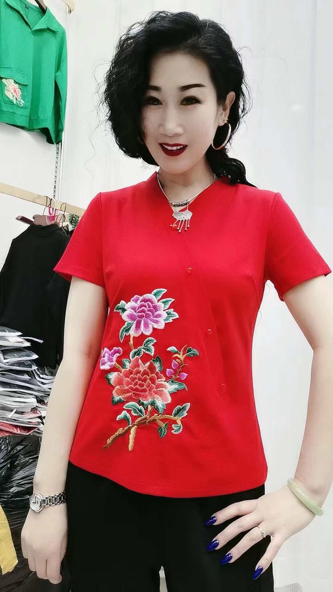 杨柳轩笑民族风半袖,时尚百搭个性,穿着舒适,从80-150斤都可以穿着,xl-5xl有黑色、红色、白色三个颜色编码05168893