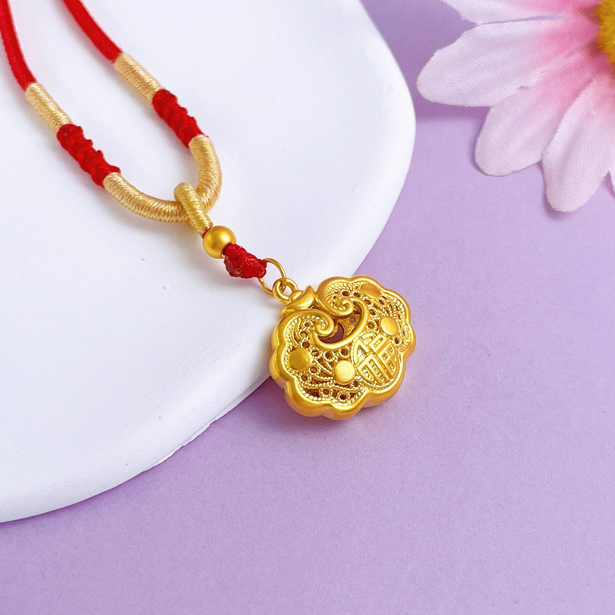 【限时7.5折】【定价黄金】足金 无氰5D空心如意锁平平安安幸福健康福字锁包吊坠(AA5DDZ00004)(预售产品下单后不退款不退货不换货不补差价)