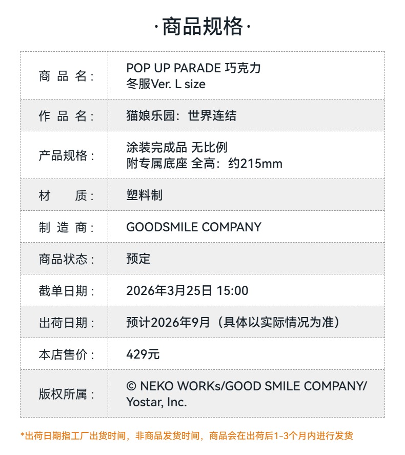 【GSC预售定金】POP UP PARADE 巧克力 冬服Ver. L size 猫娘乐园:世界连结
