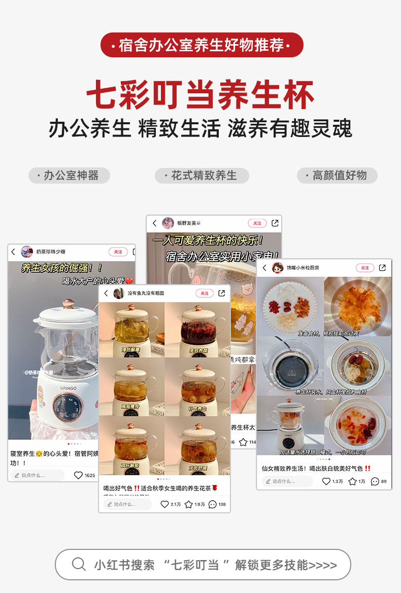 【高颜值养生神器】七彩叮当分体养生杯隔水鲜炖8小时保温烧水/燕窝/花茶/姜茶/甜品/炖煮全包揽杯壶两用