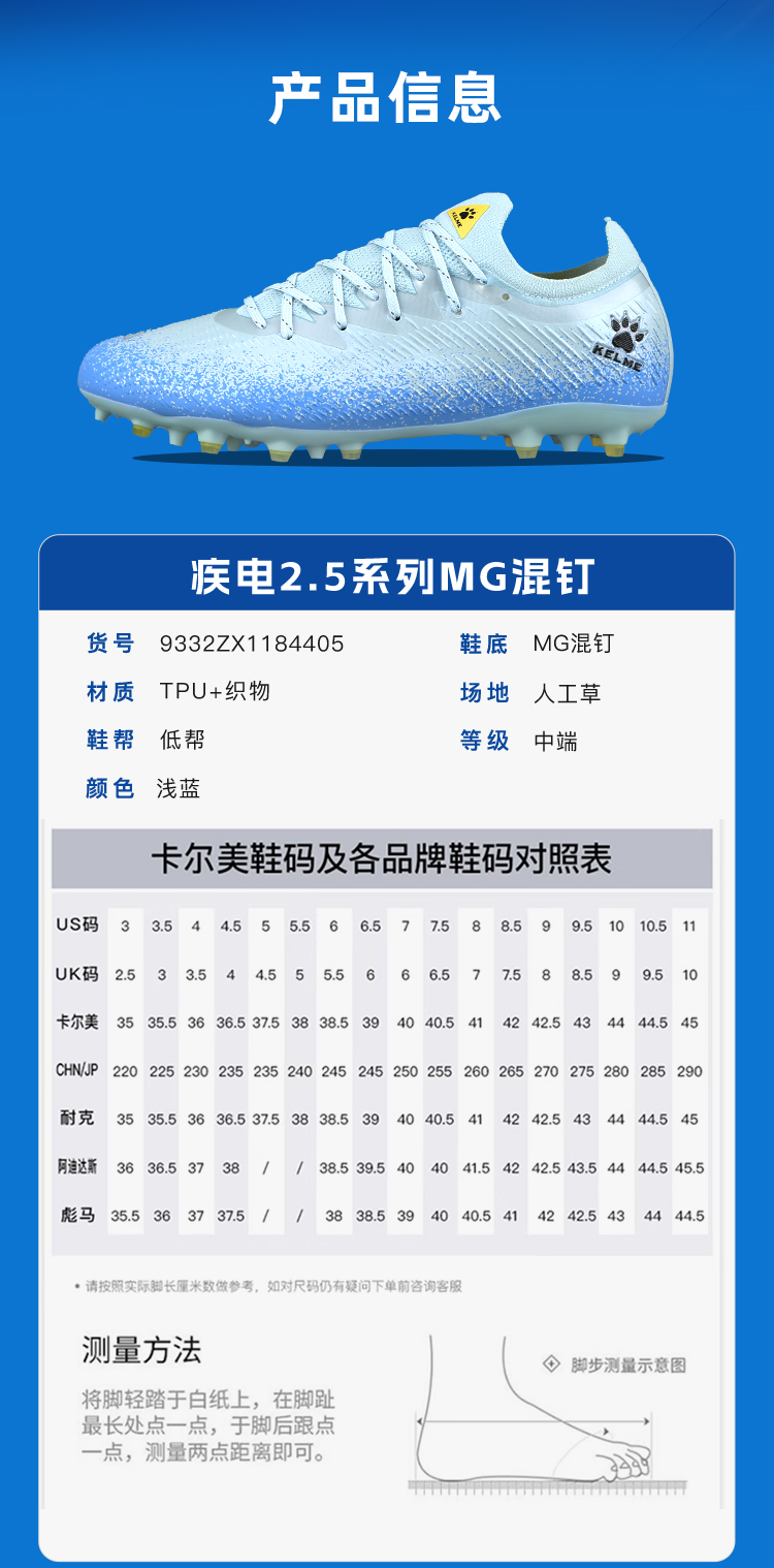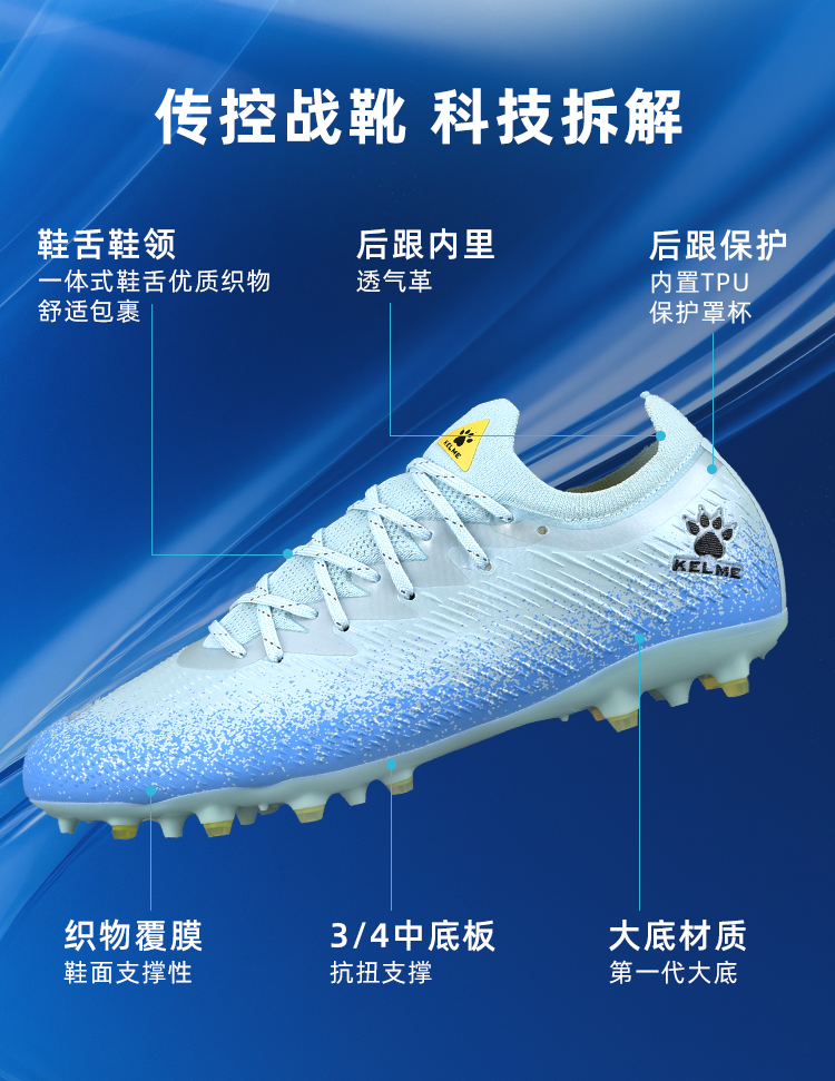 小李子KELME卡尔美疾电2.5.3中端MG短钉运动训练比赛成人足球鞋男