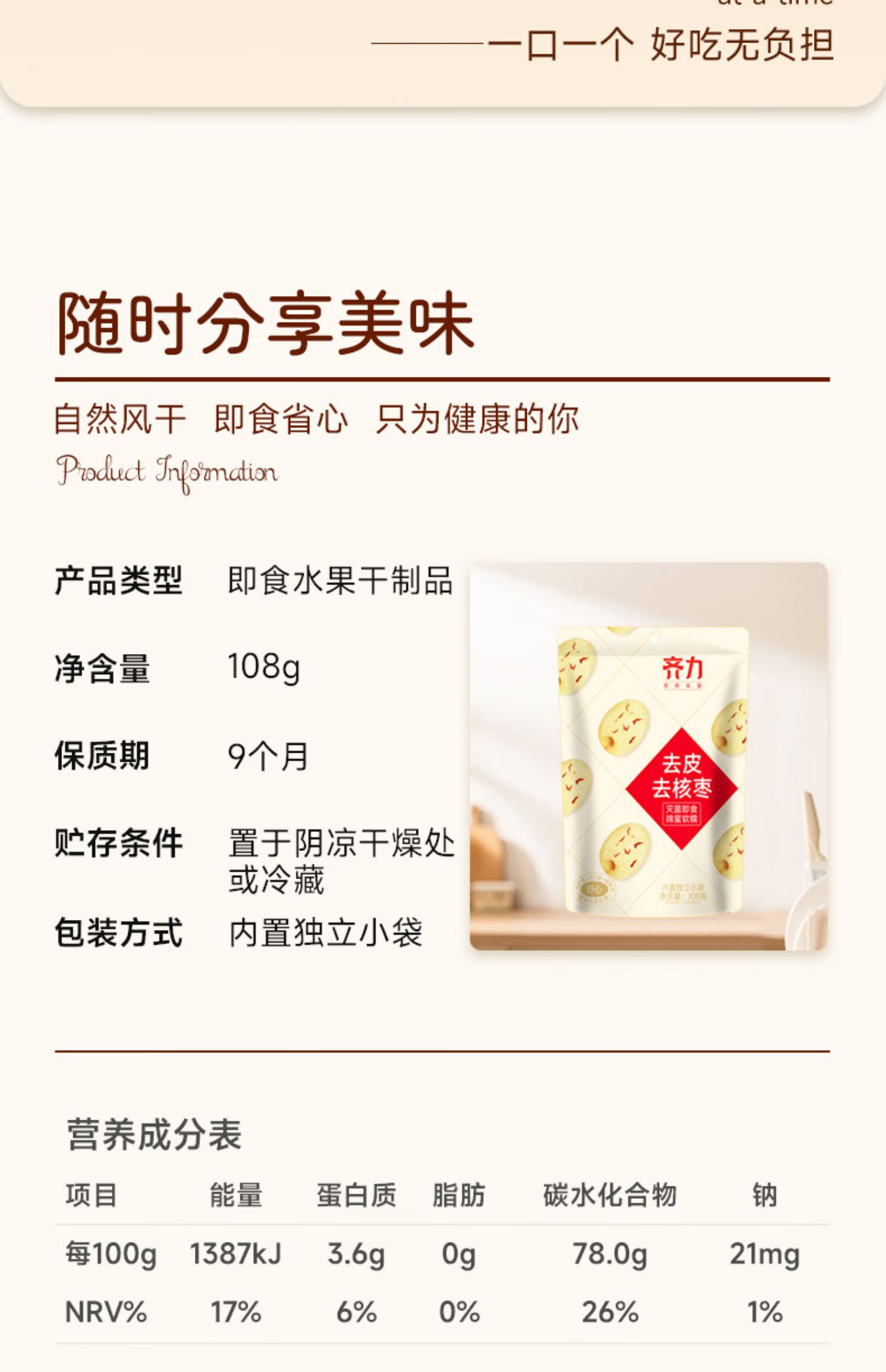 齐力去皮去核枣108g