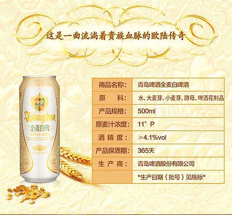 青岛啤酒(TsingTao) 白啤 500ml ≥4.1度