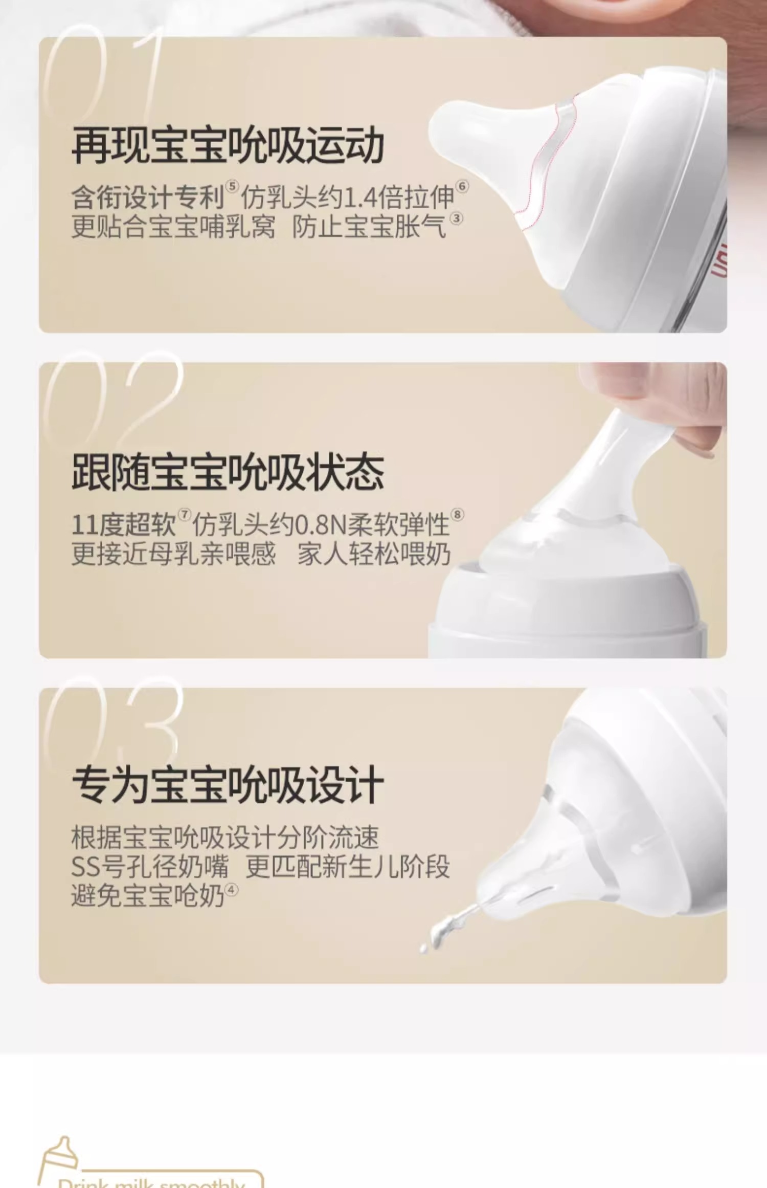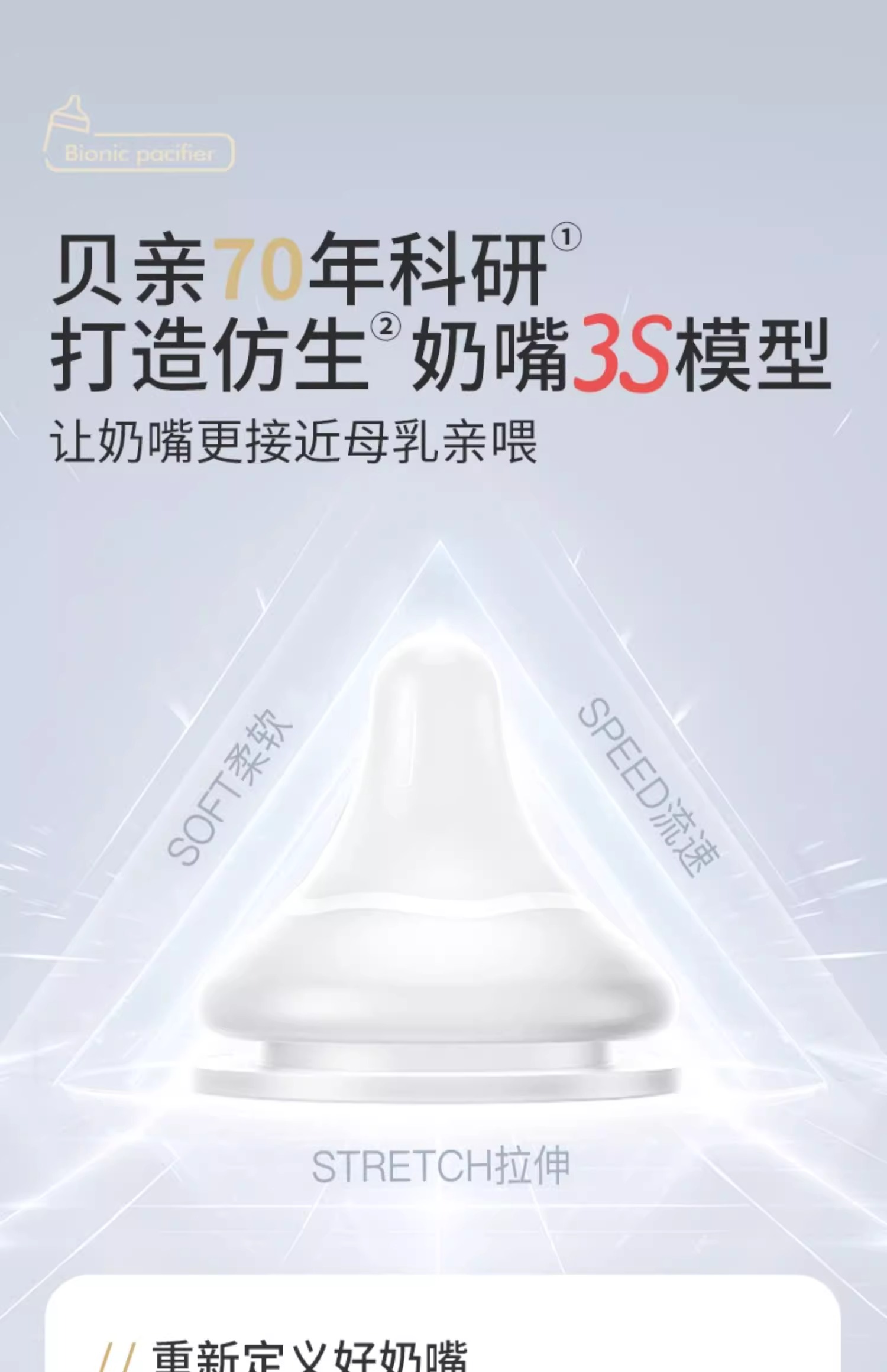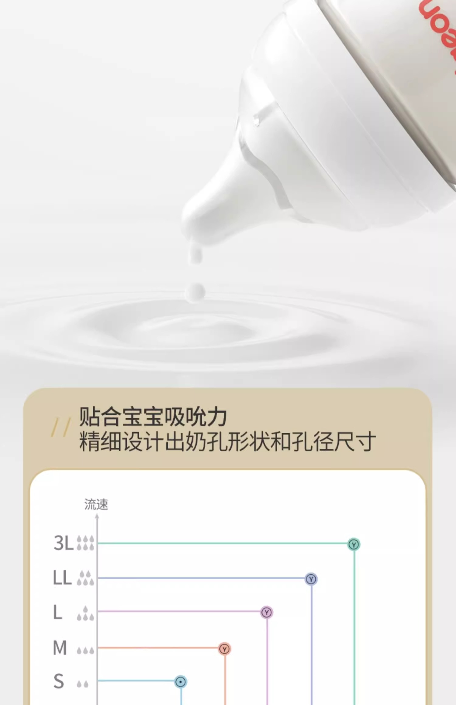 贝亲畅吸实感Ⅲ宽口径奶嘴3L号(15月龄+宝宝适用)
