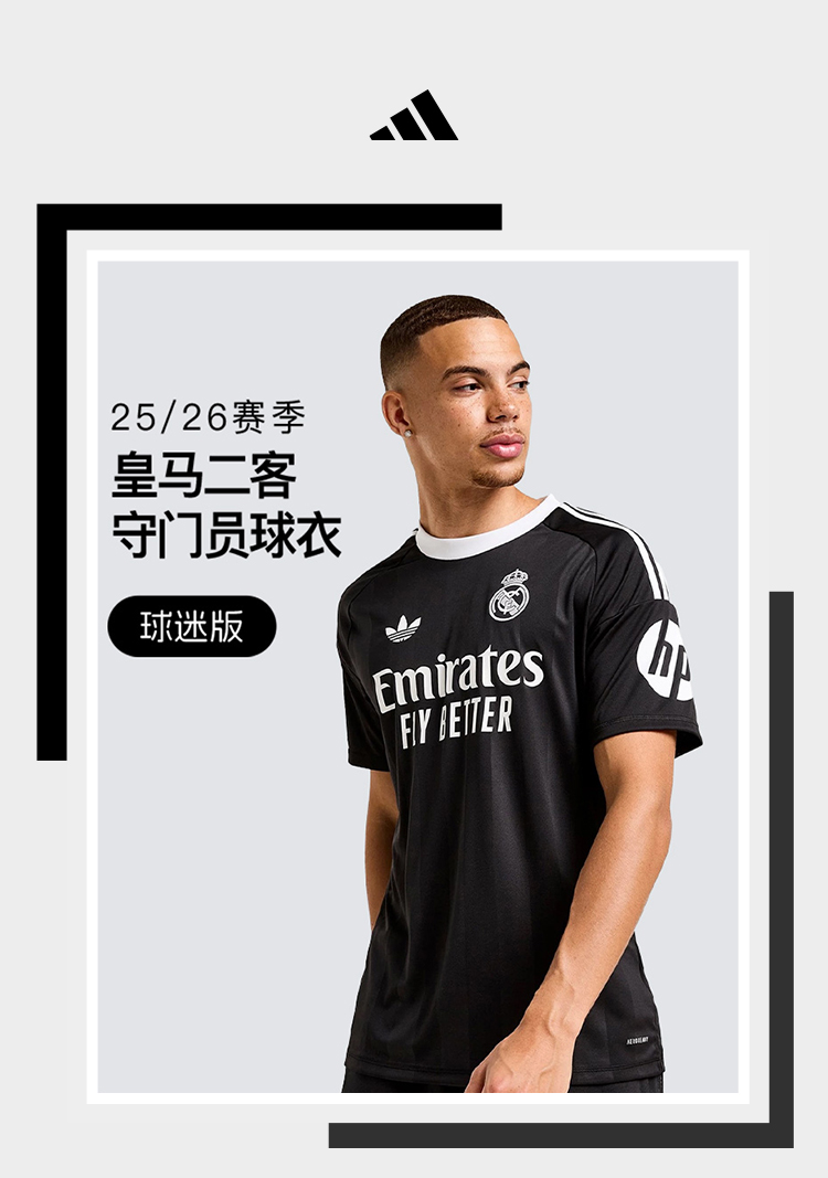阿迪达斯25/26皇马球迷版第二客场守门员短袖比赛球衣JP4173【加印号码臂章 联系客服】