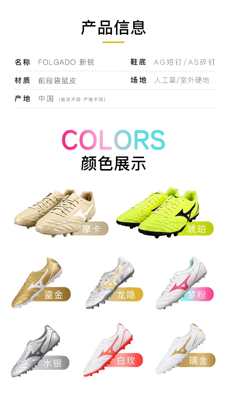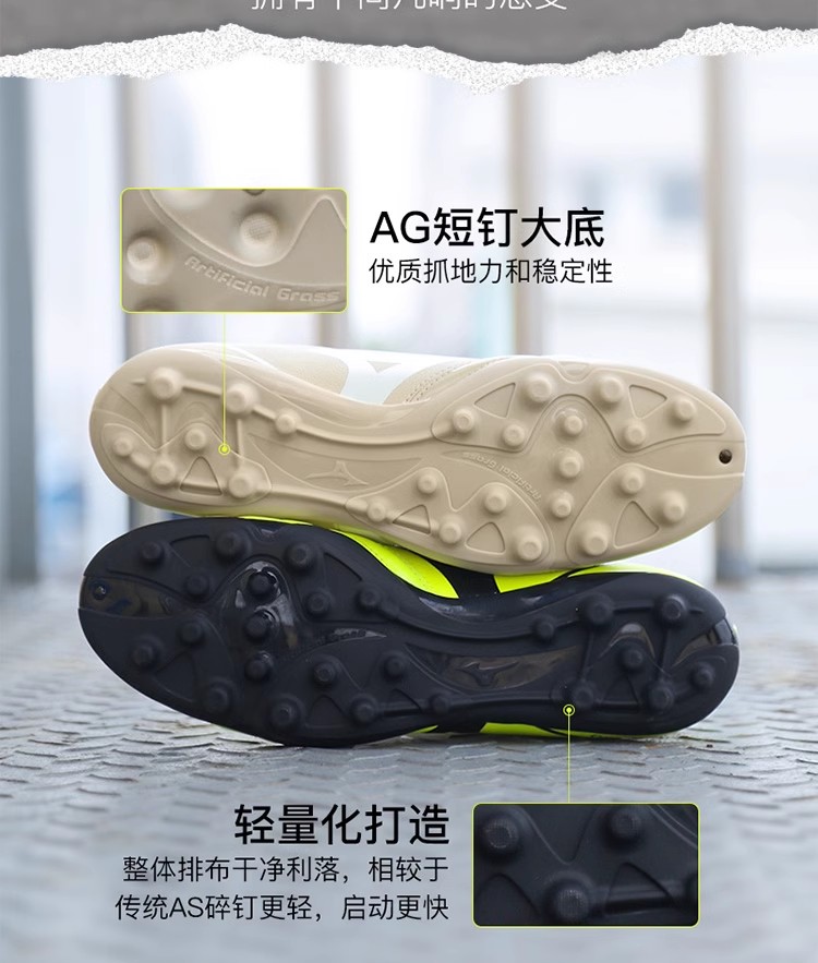 【赤足感】Mizuno美津浓新锐袋鼠皮中端低帮AG/AS人草碎钉足球鞋成人男
