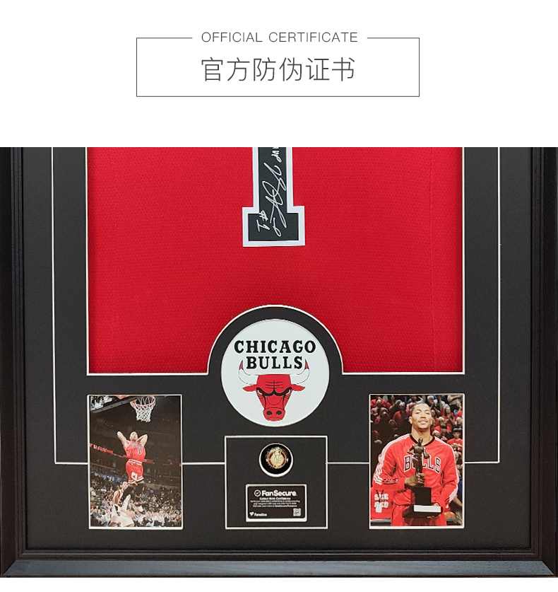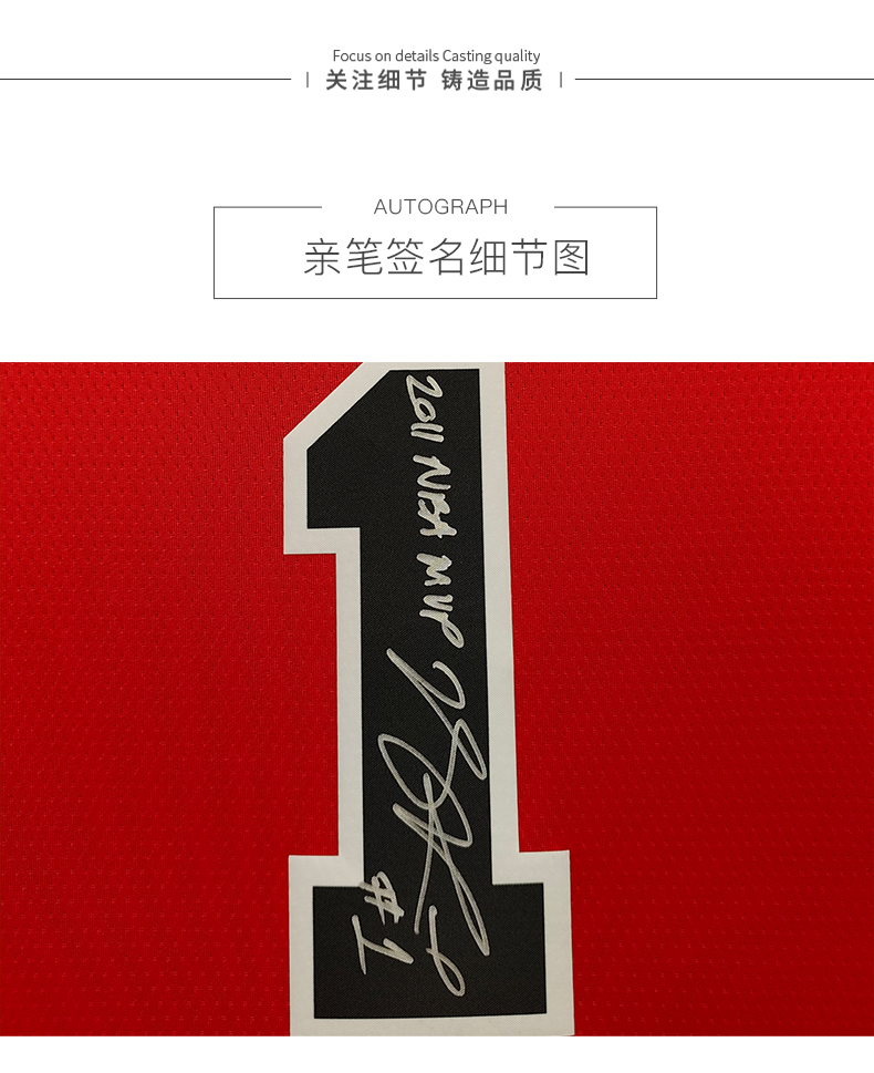 收藏系列 德里克罗斯 公牛队1号 红色球迷版 “2011 NBA MVP铭文” 亲笔签名球衣