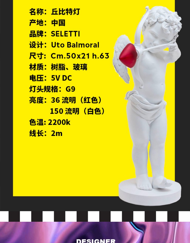 SELETTI 爱心丘比特灯具 室内桌面创意摆件丘比特氛围台灯情人节礼物送女友