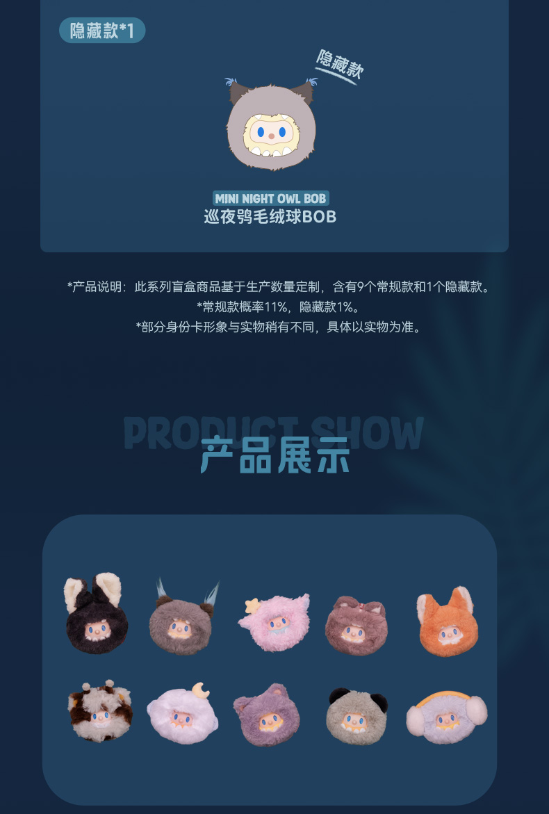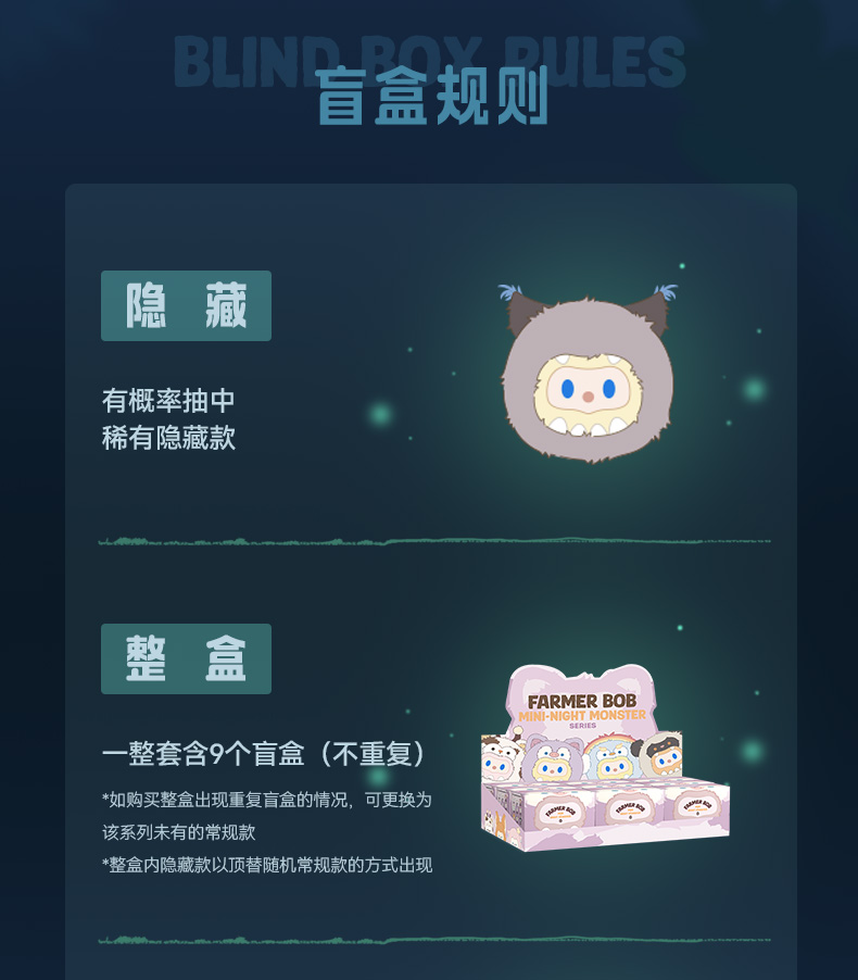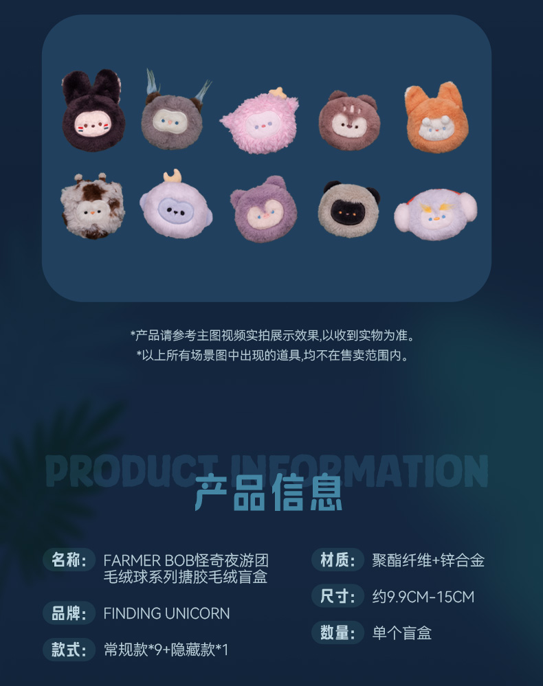 FARMER BOB 怪奇夜游团毛绒球系列搪胶毛绒盲盒