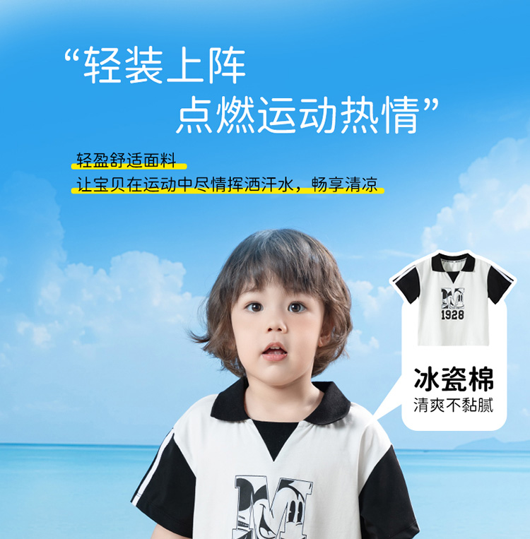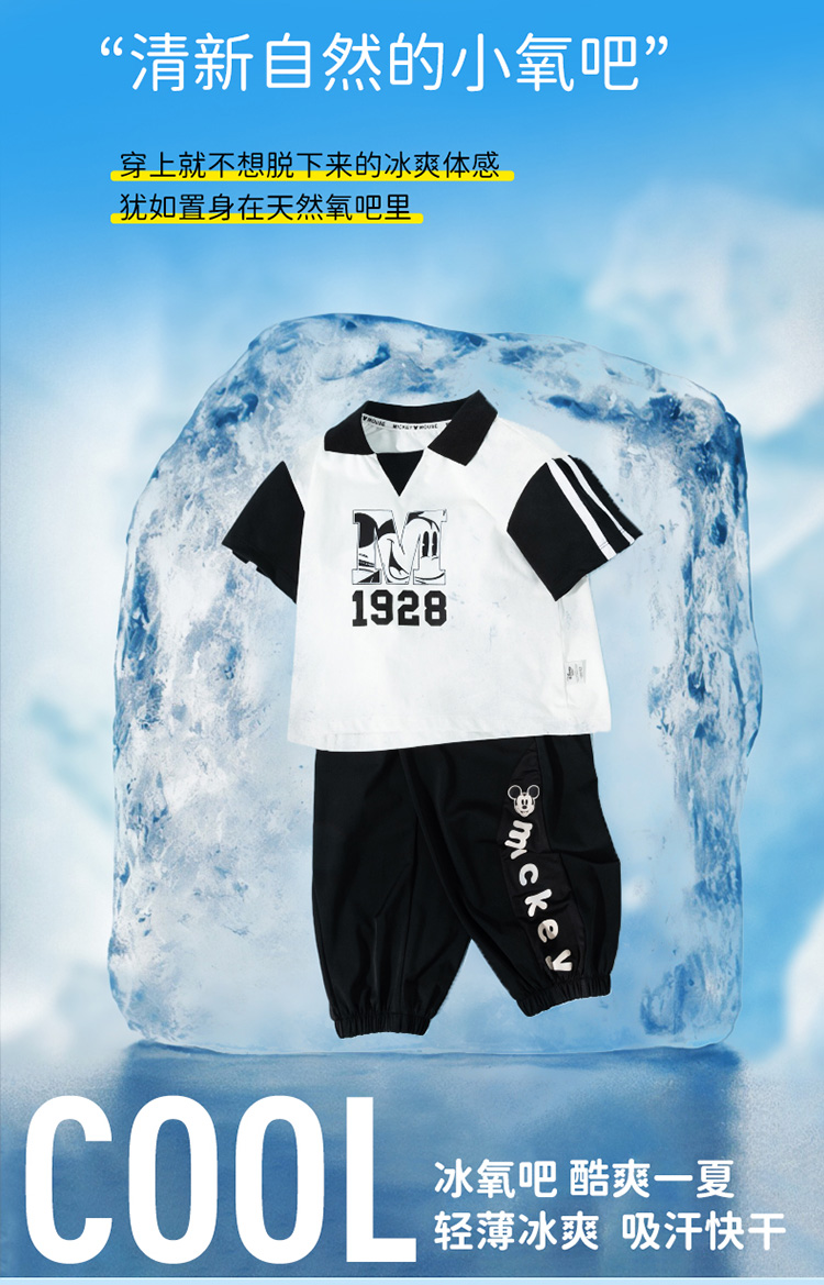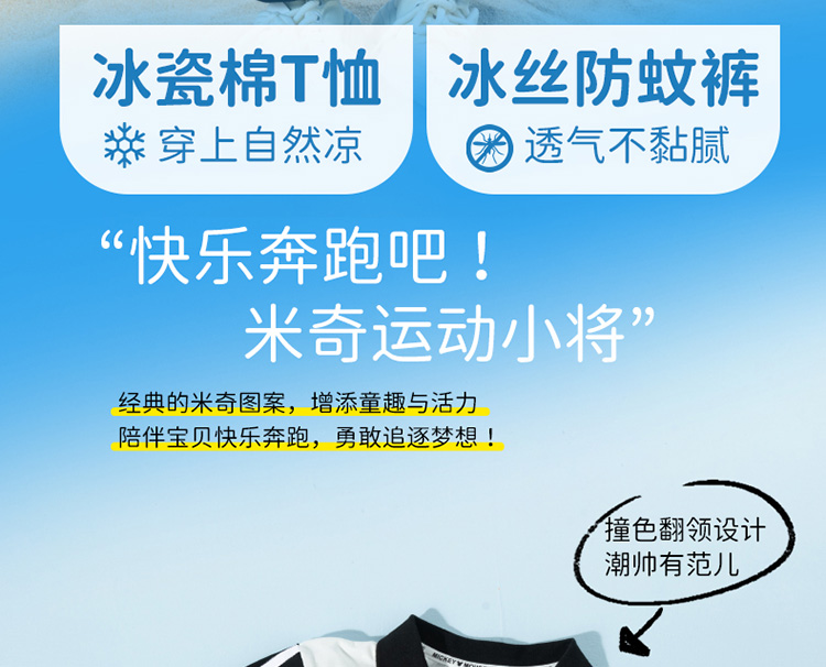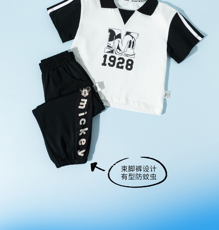 迪士尼【米奇凉感短袖防蚊裤套装】25夏季新款男童冰感T恤休闲裤套装ZD2ET028