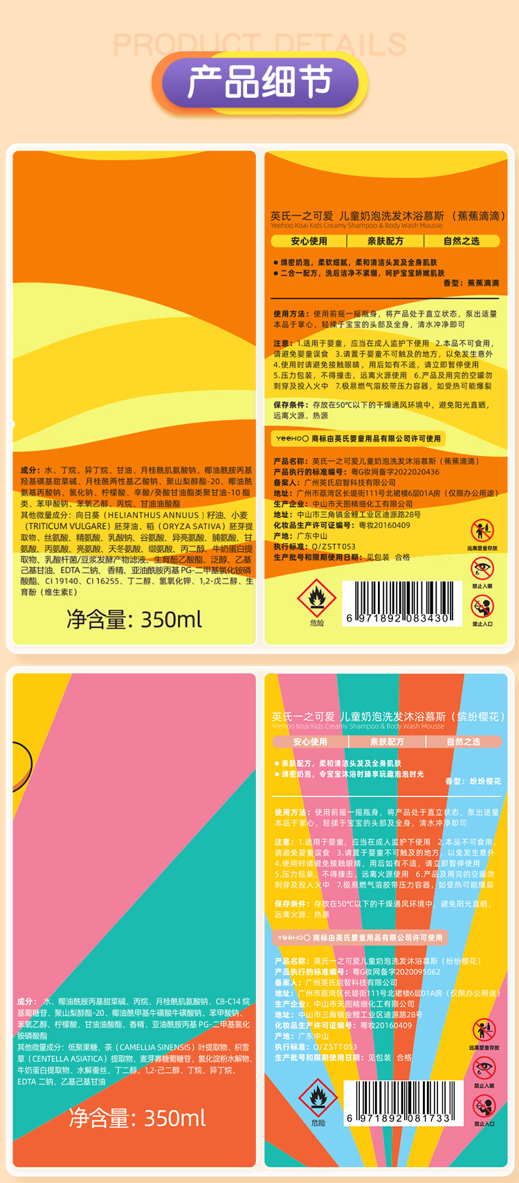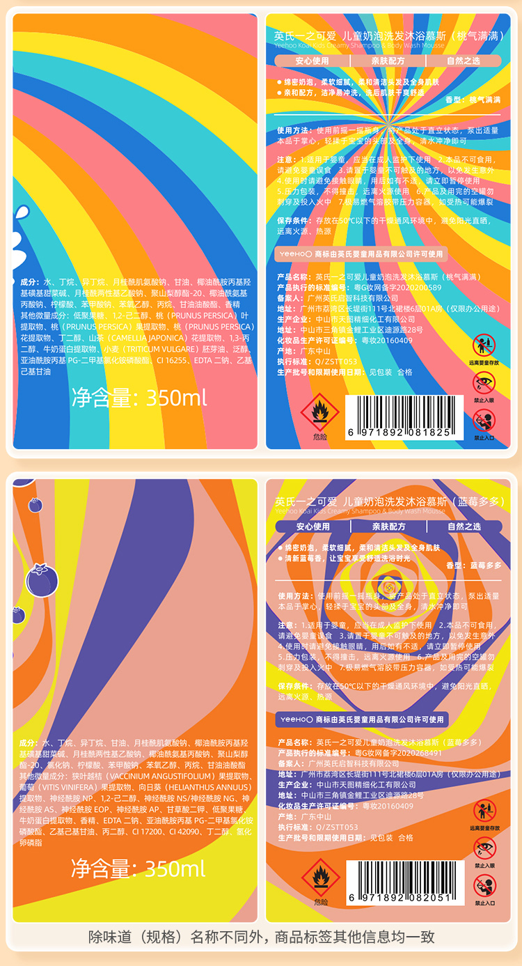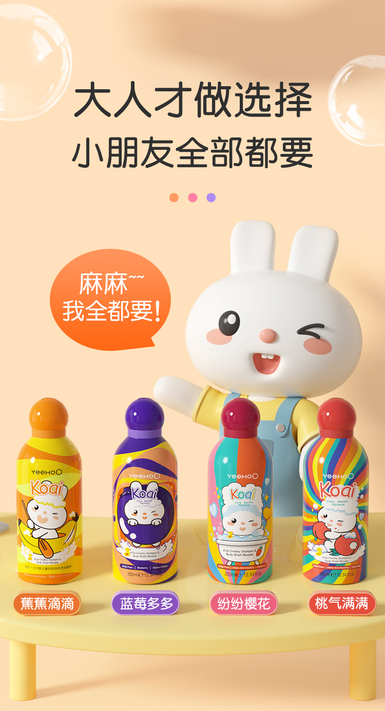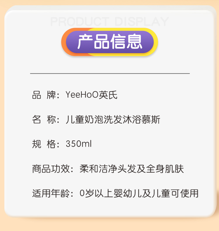 英氏儿童沐浴露洗发水二合一婴儿宝宝洗发沐浴露二合一小奶泡350ml两瓶装