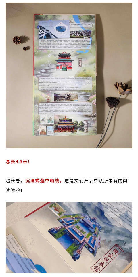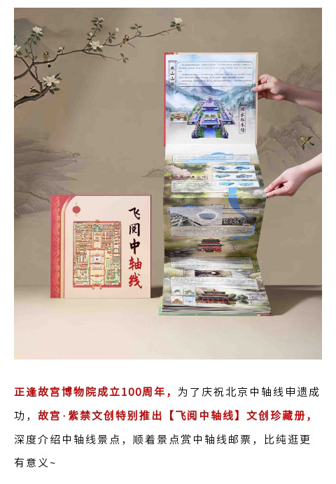 【飞阅中轴线】文创珍藏册,故宫博物院成立100周年版,4.3米超长卷沉浸式逛中轴线,24枚中轴线邮票
