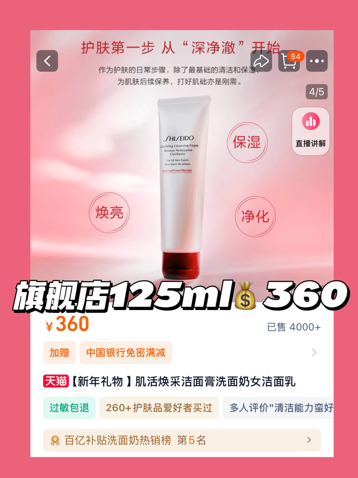 【品名】日本资生堂红腰子肌活焕采洁面膏洗面奶125ml