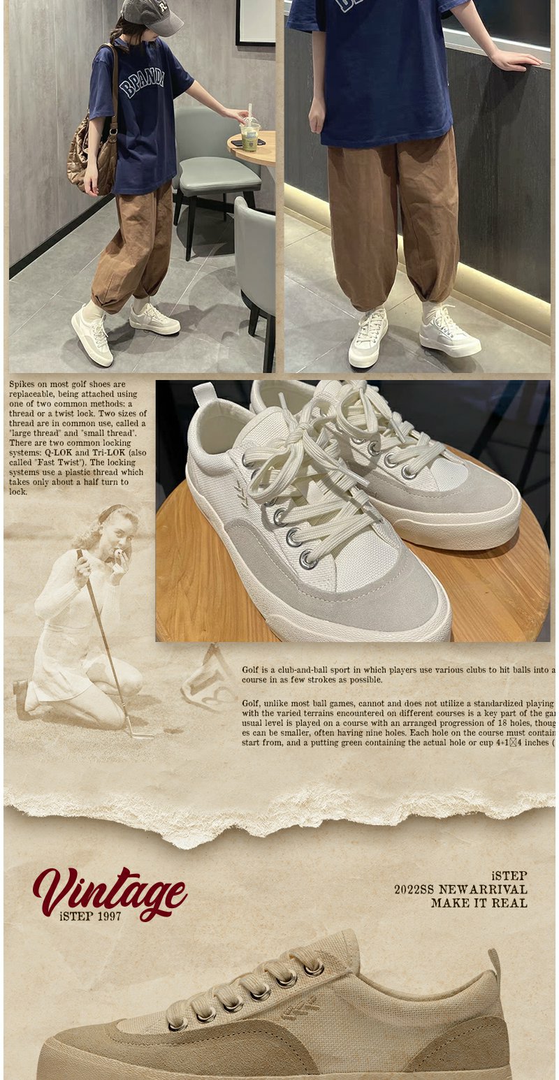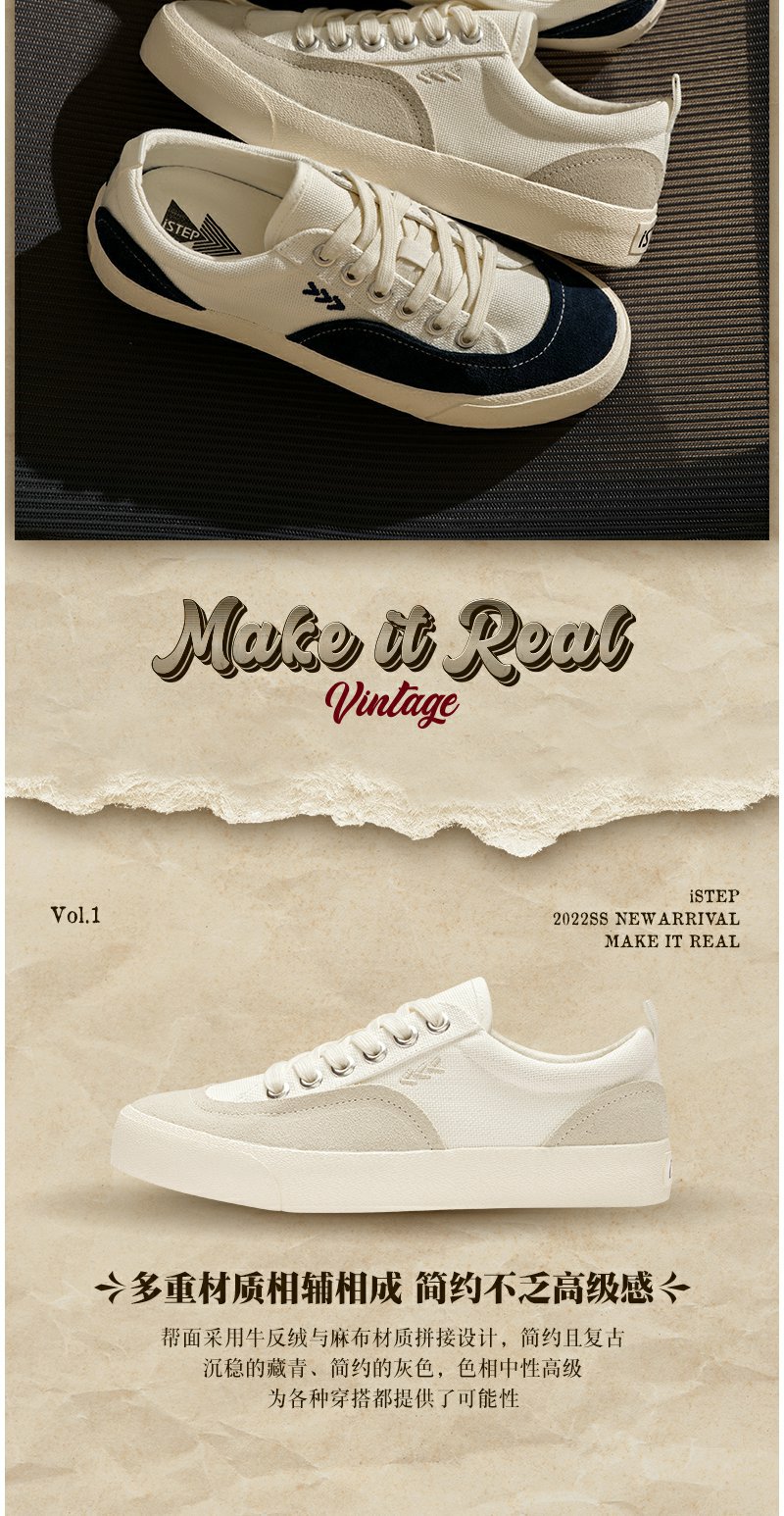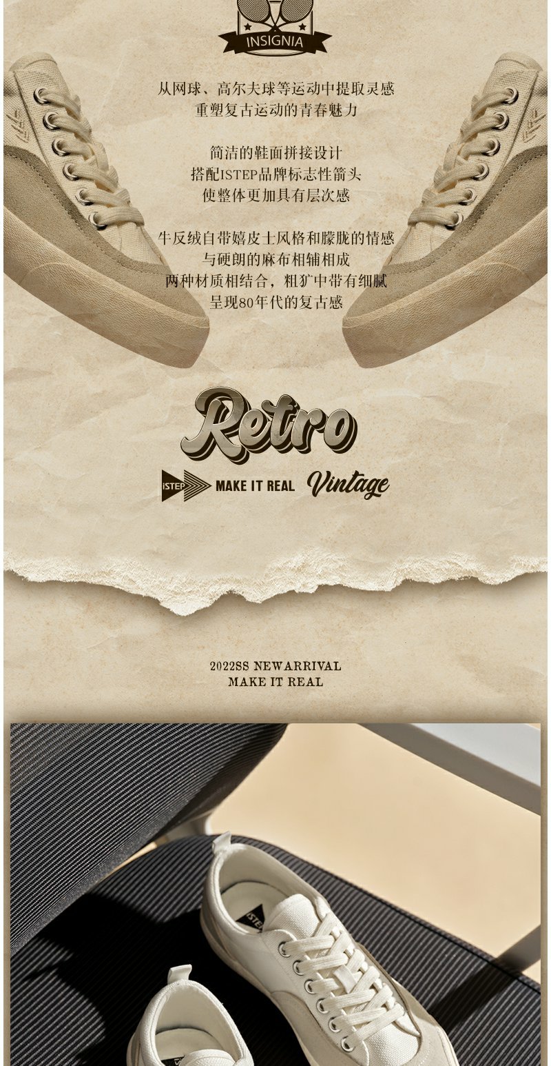 【2026新春专享】istep新款夏季新品复古高尔夫网球鞋低帮帆布鞋板鞋男女款(瑕疵品不退不换)