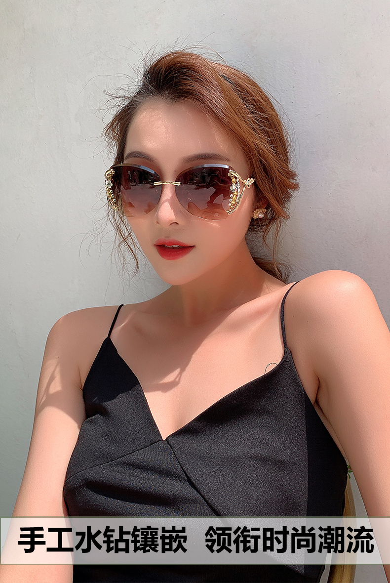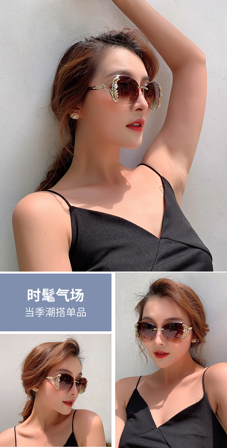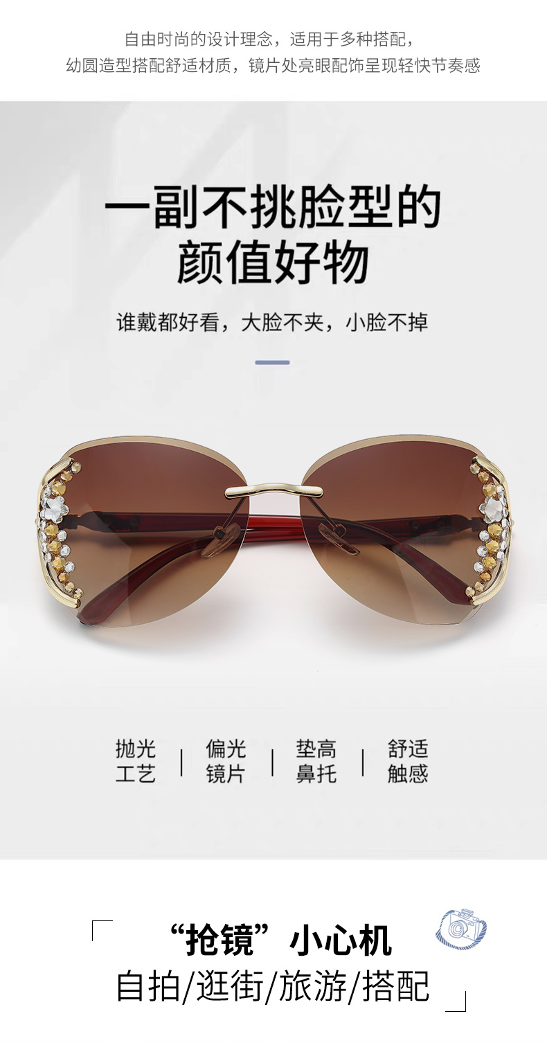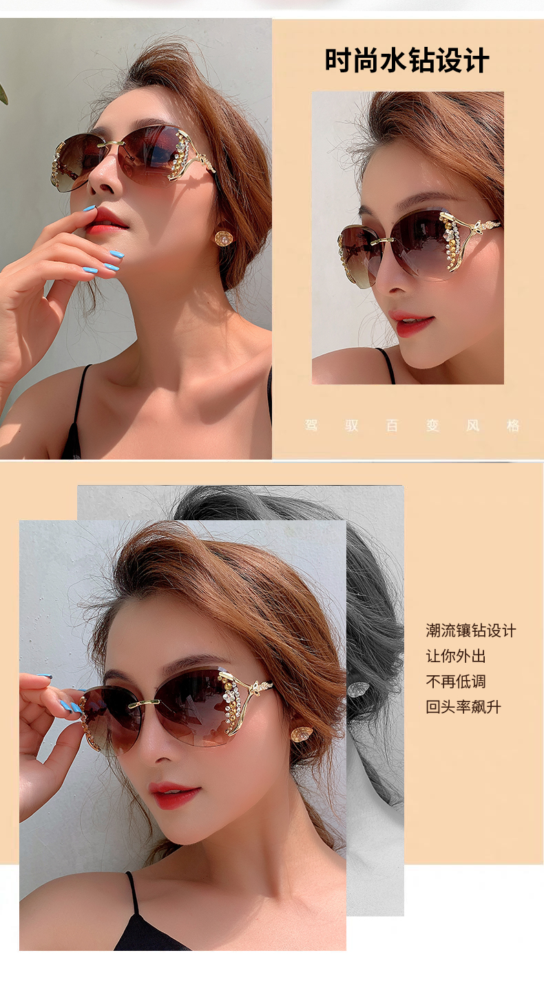 【潮女必备,时尚韩版】墨镜防紫外线,镶水钻芒花闪。阳光不再刺眼,演绎清新好气色,茶色潇洒自然,优雅慵懒轻舞扇!