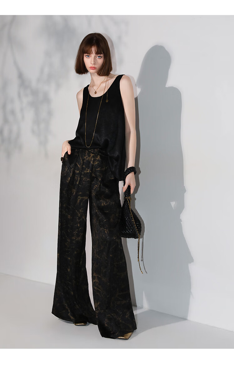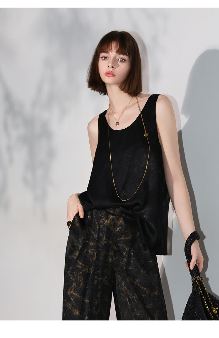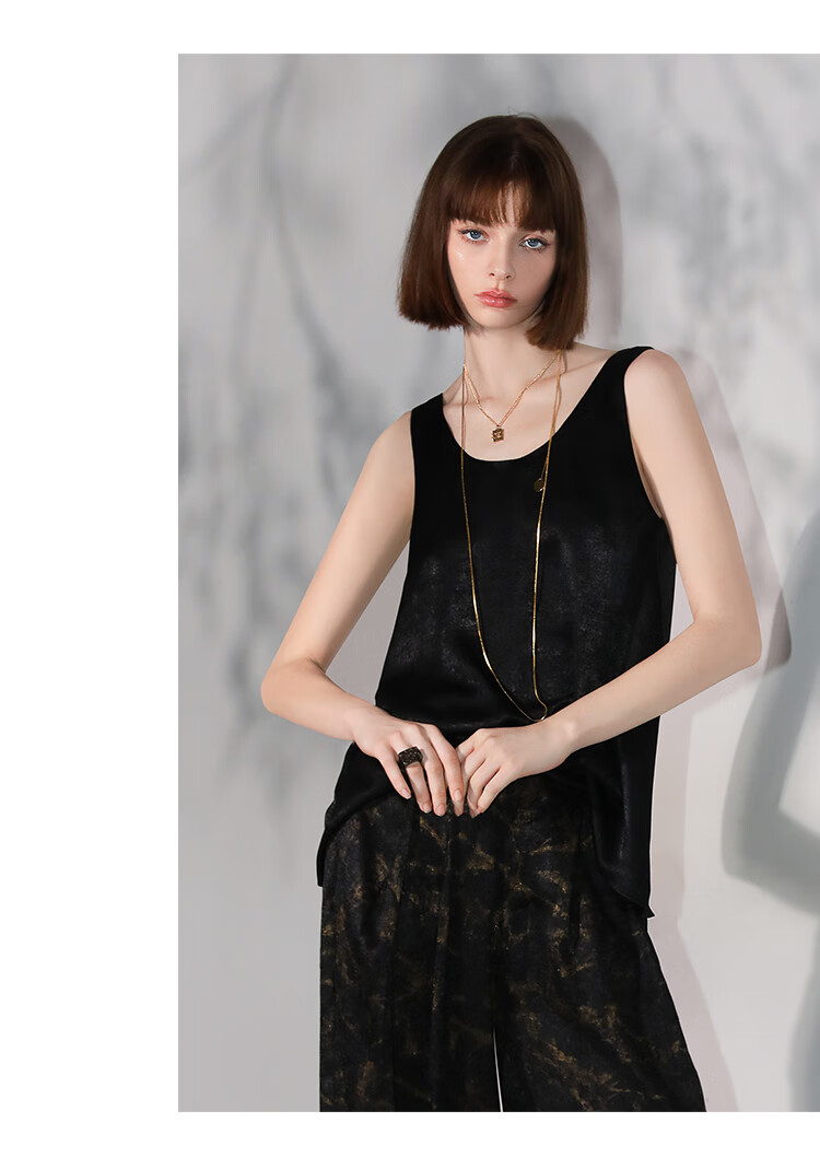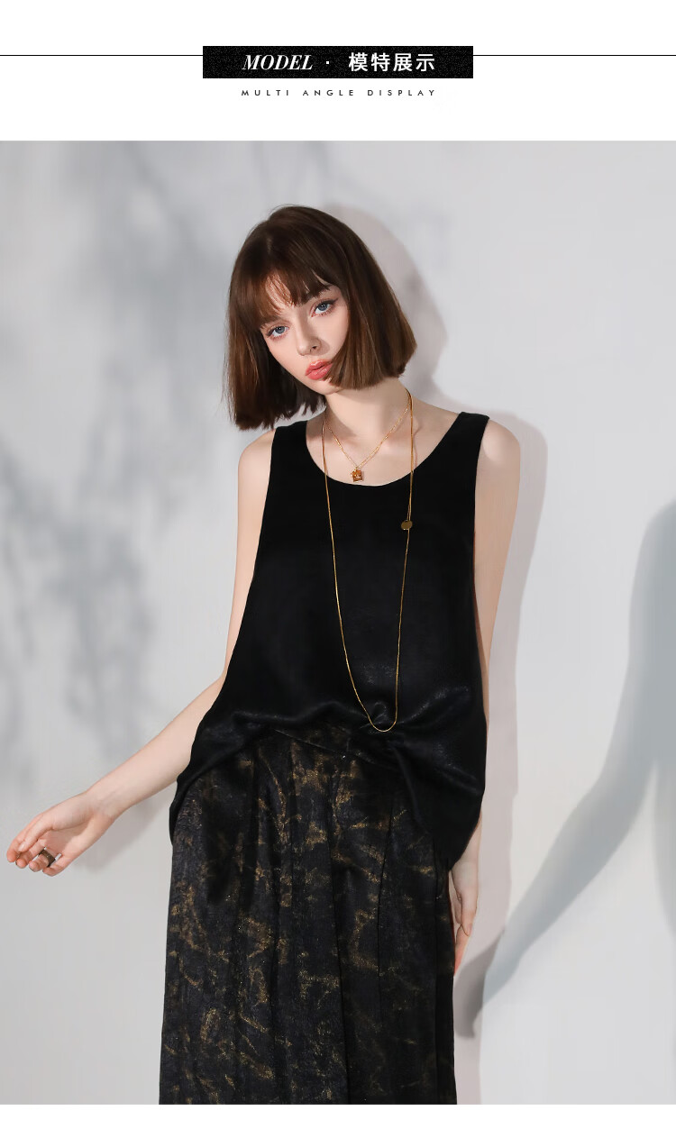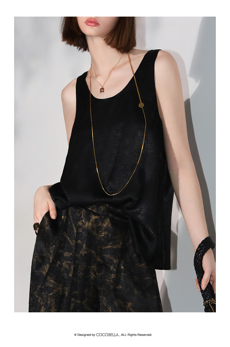 COCOBELLA重工烫银细闪U领吊带背心女新中式老钱风上衣VT0009B