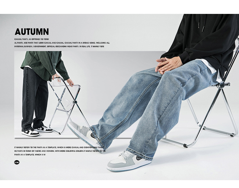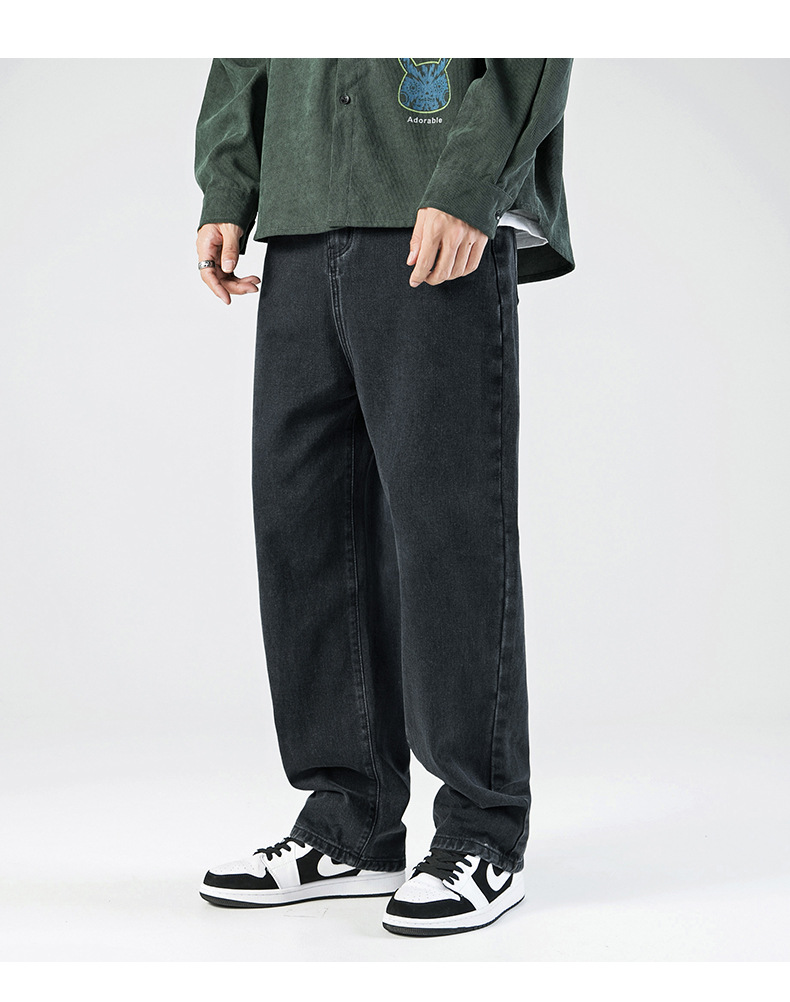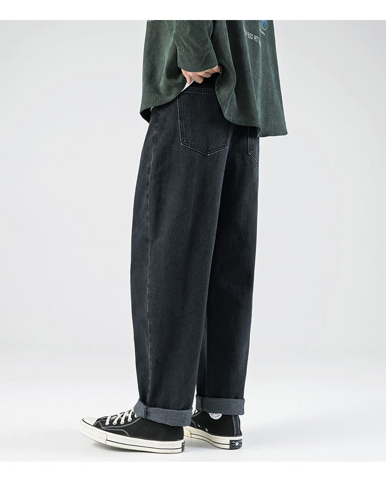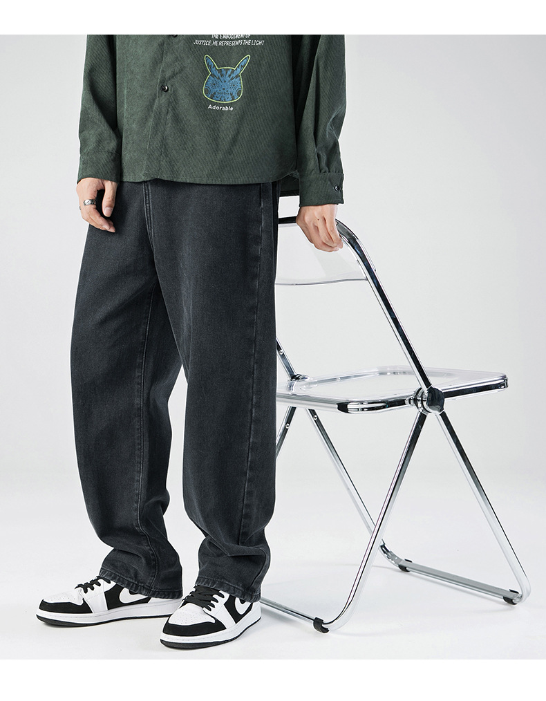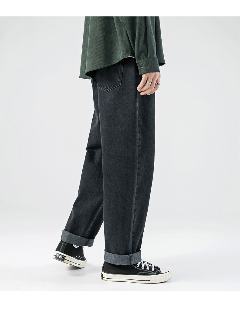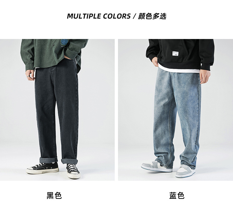 「三款配色」韩路日系男装 2023春秋季新款简约纯色牛仔裤男水洗宽松直筒裤子下装