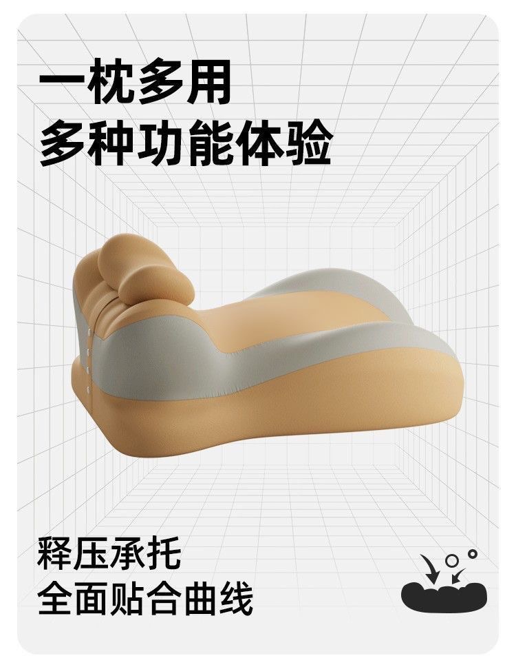 【巨舒适!多功能趴趴枕】新款多功能记忆棉 床上 沙发趴睡枕 床头靠垫 护腰枕 护颈枕 舒适脖颈 趴着玩好舒服 约130°舒适颈椎曲度