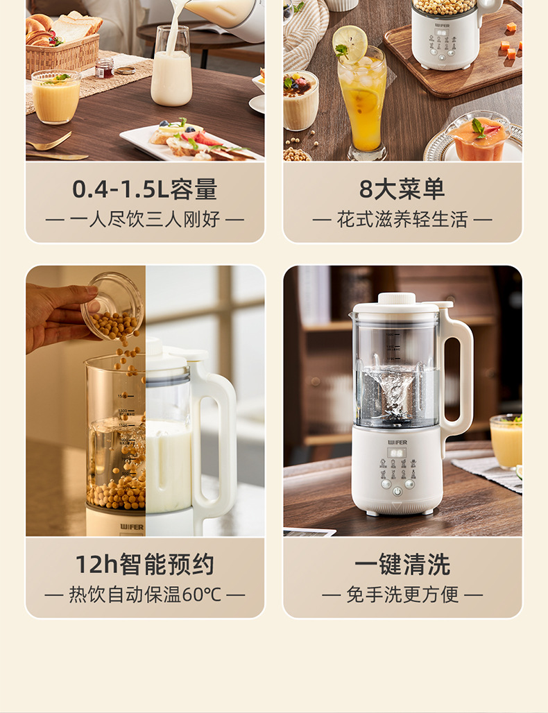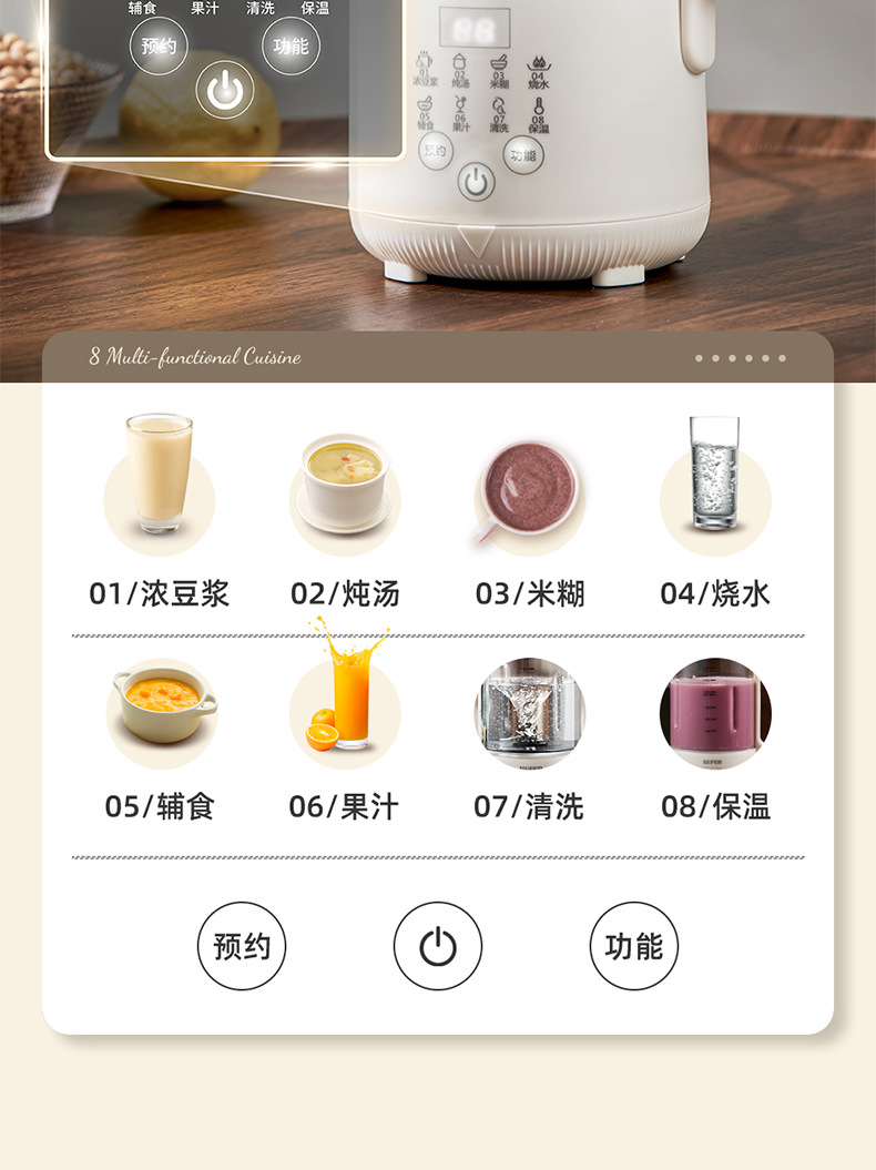 【一机多用!智能柔音加热破壁机】 家用豆浆机 老人孩子辅食机 鱼汤触屏研磨免过滤多功能破壁机