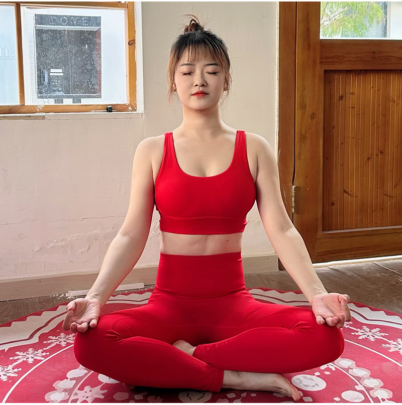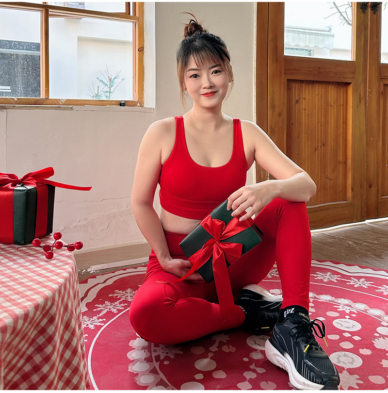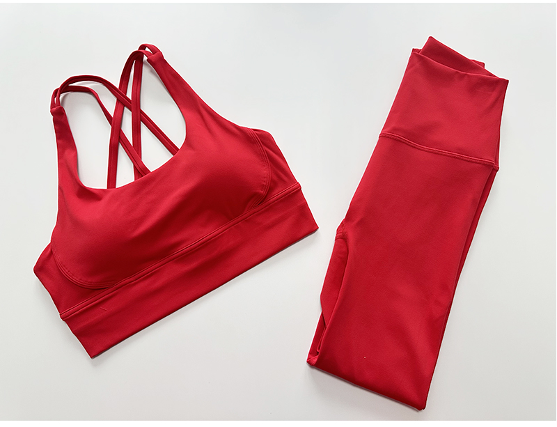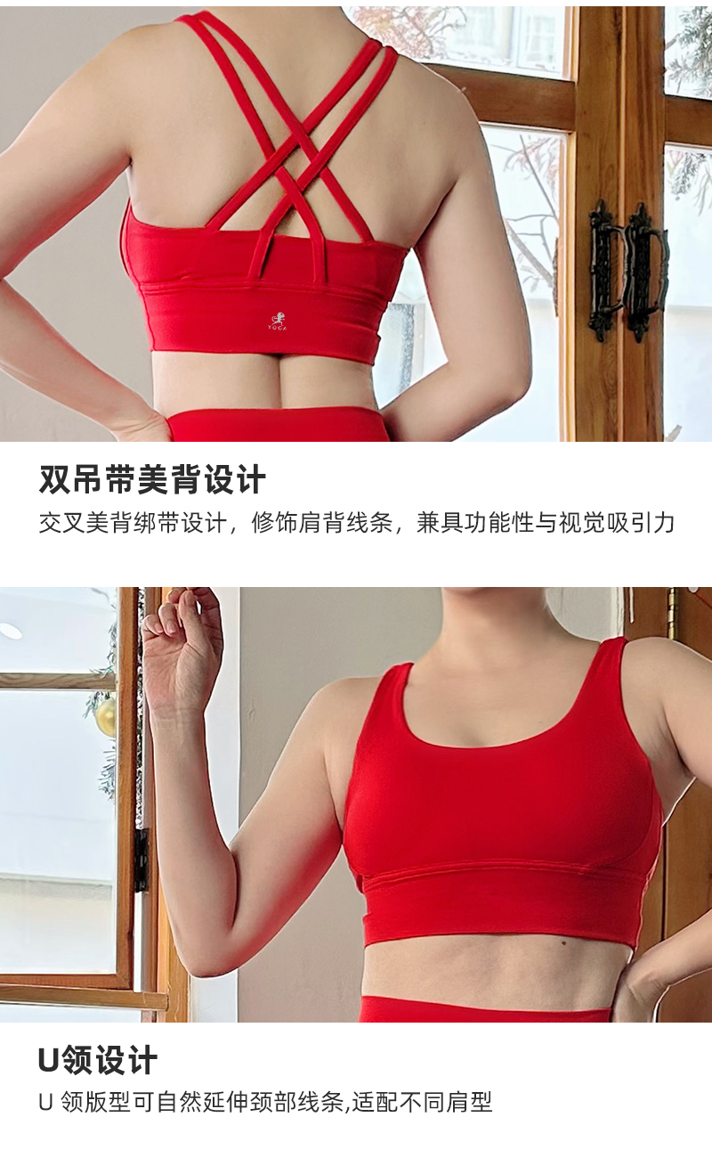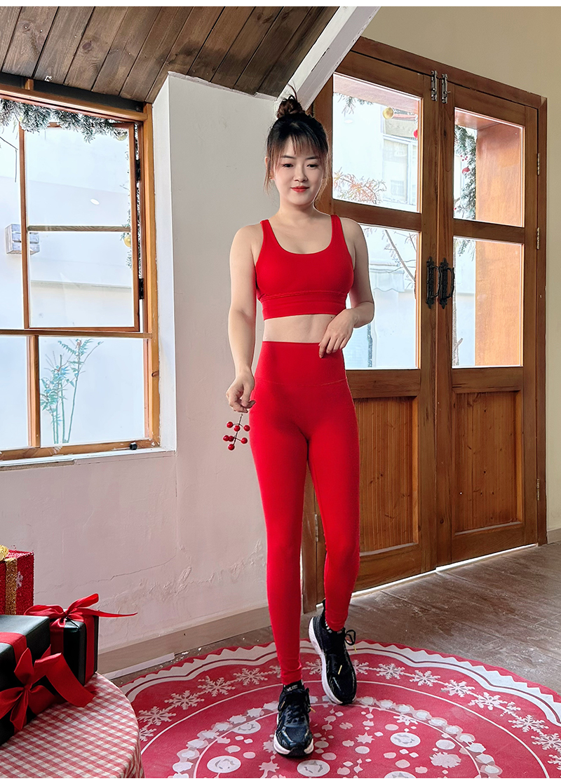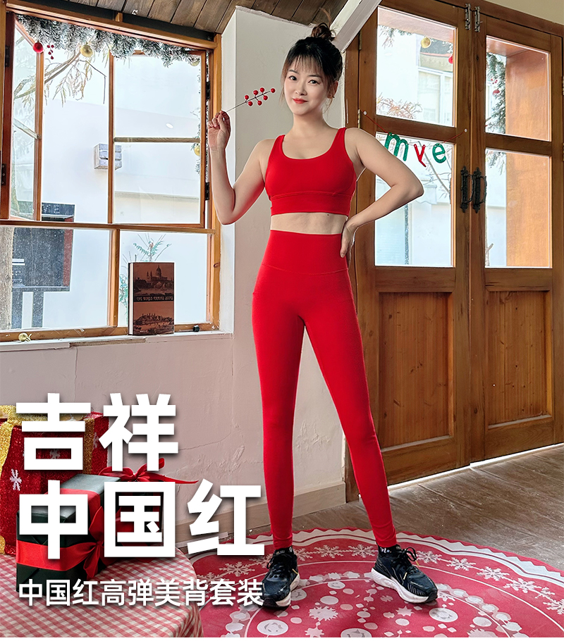 壁虎瑜伽【2601TZ489】中国红高弹美背套装【5天发货】(可拆卸胸垫)