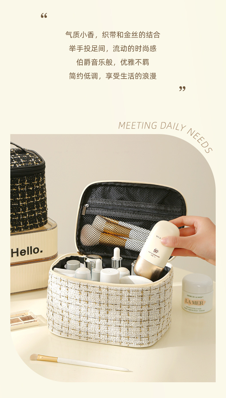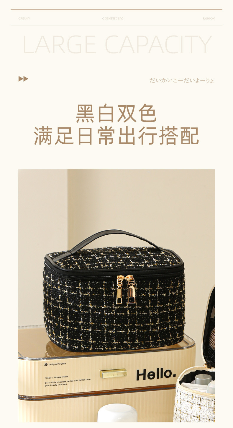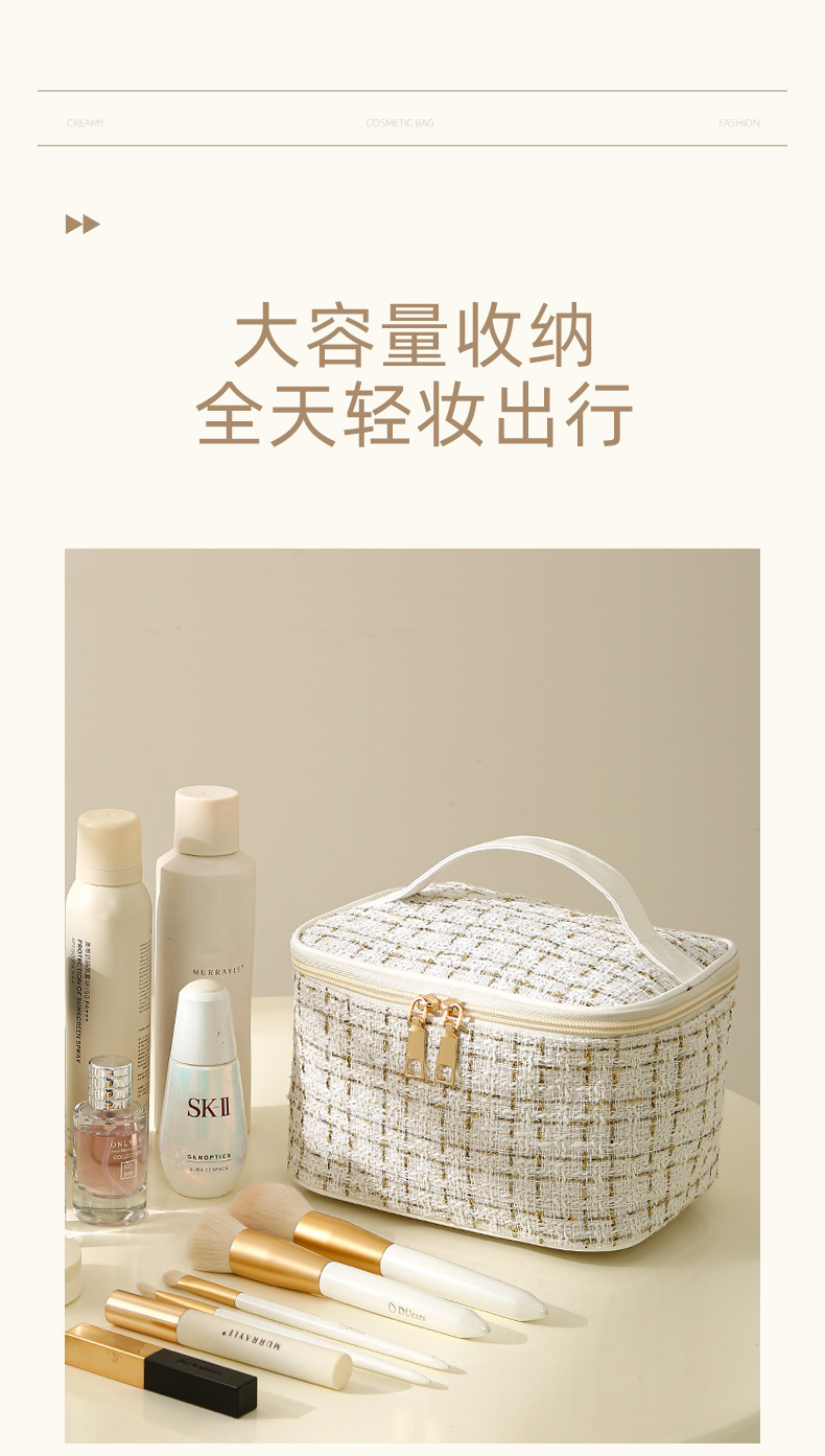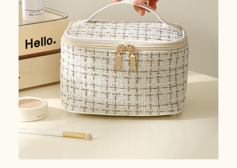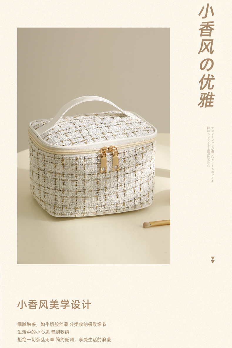 【HZ01】小香风便携化妆包 大容量便携旅行洗漱包格子手提收纳箱包