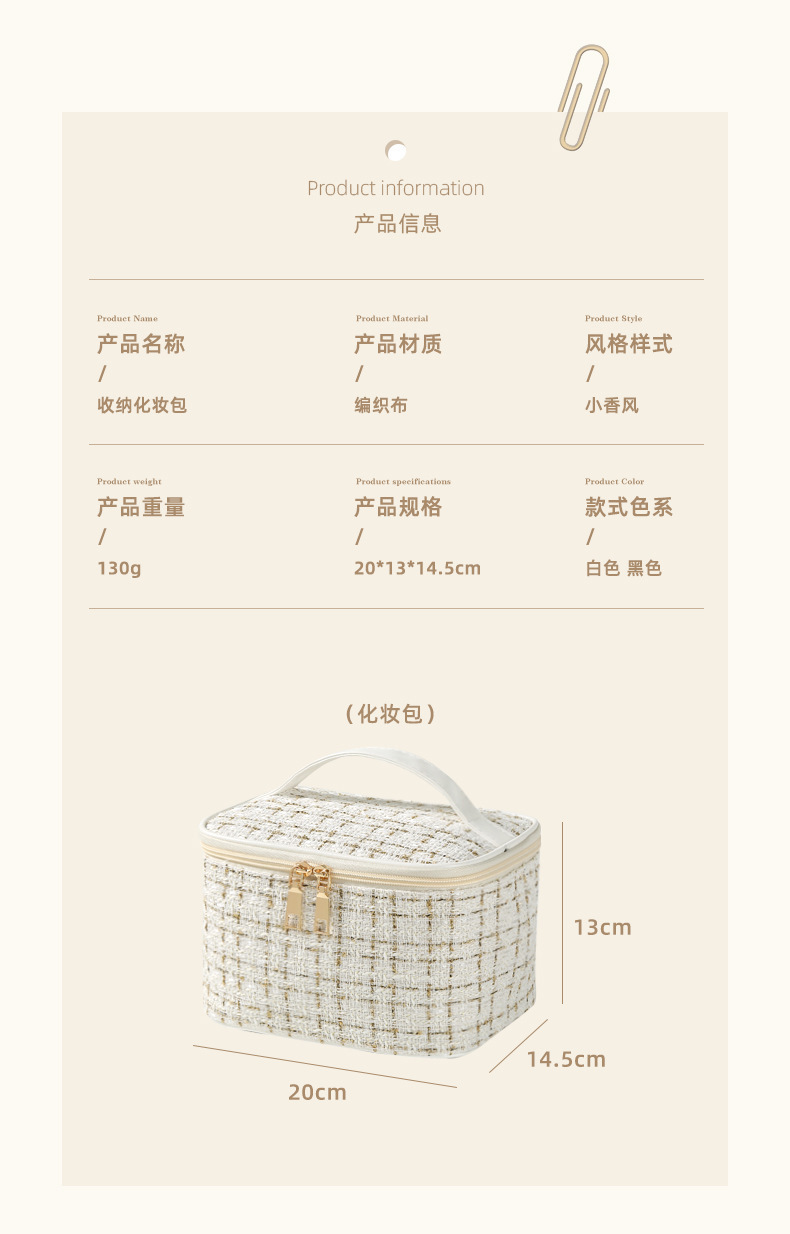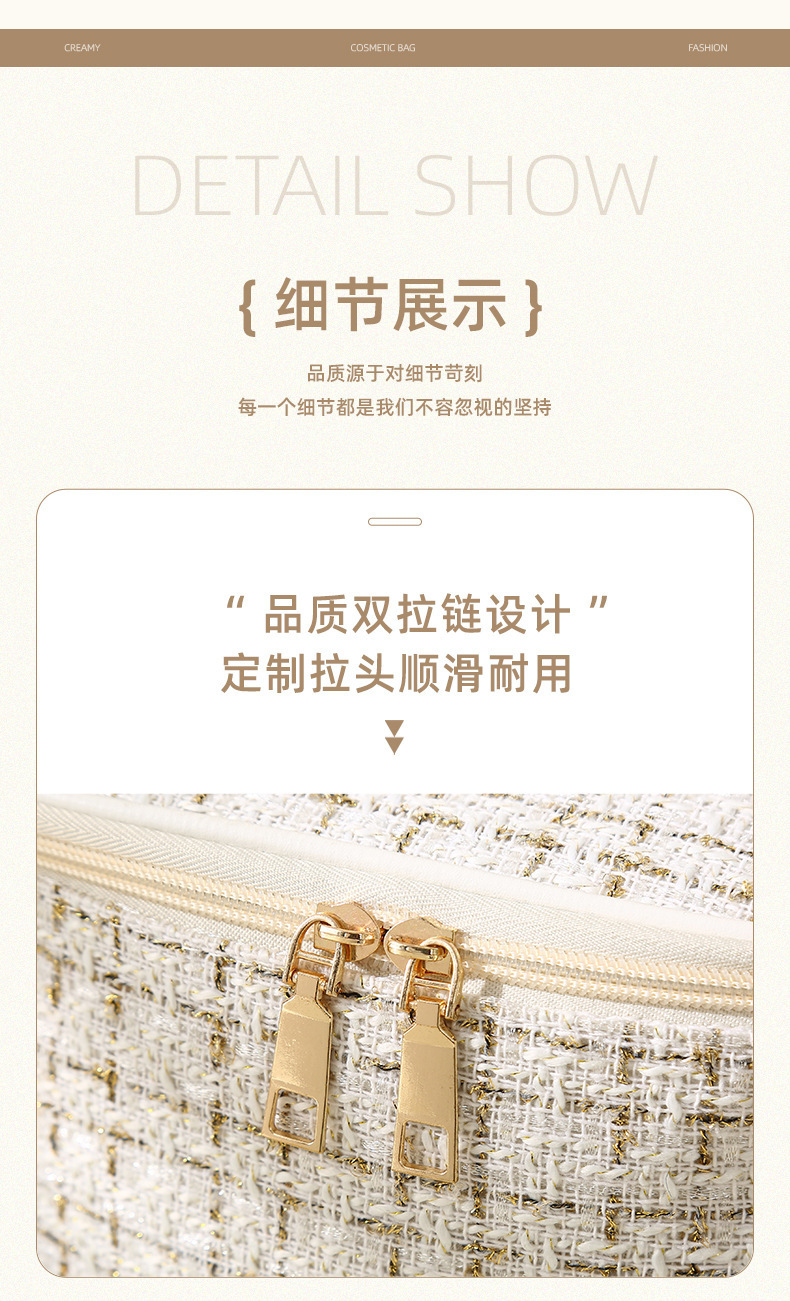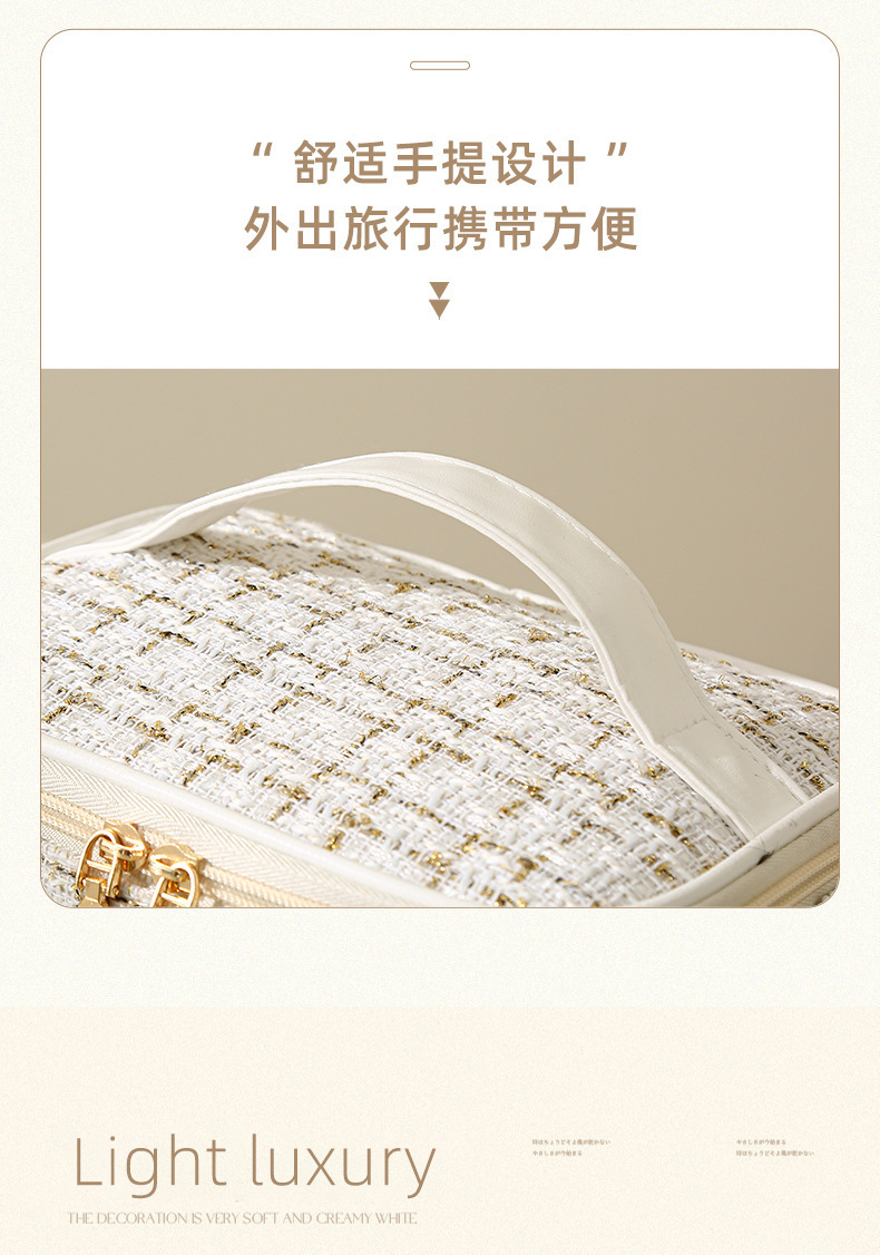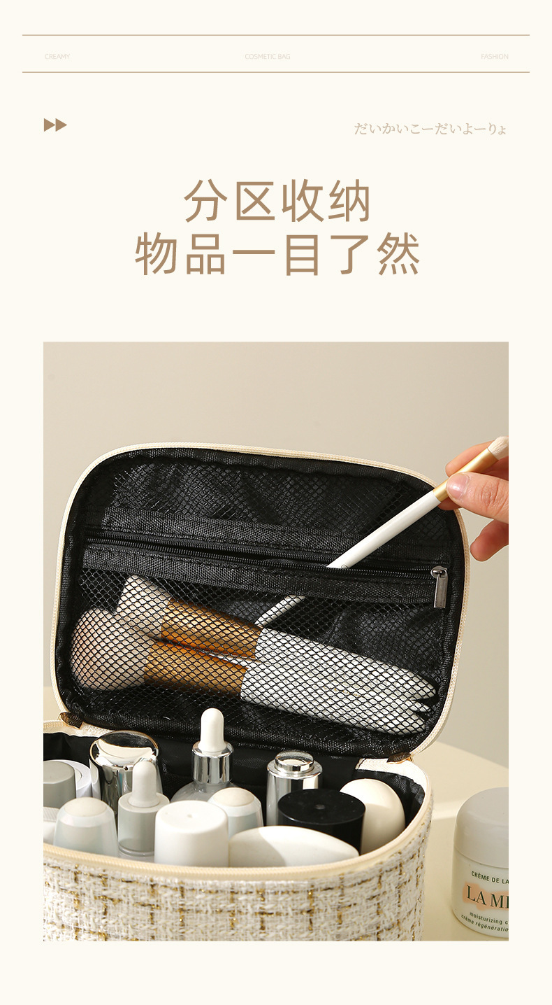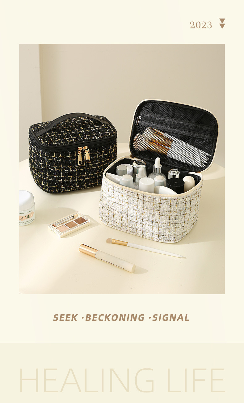 【HZ01】小香风便携化妆包 大容量便携旅行洗漱包格子手提收纳箱包