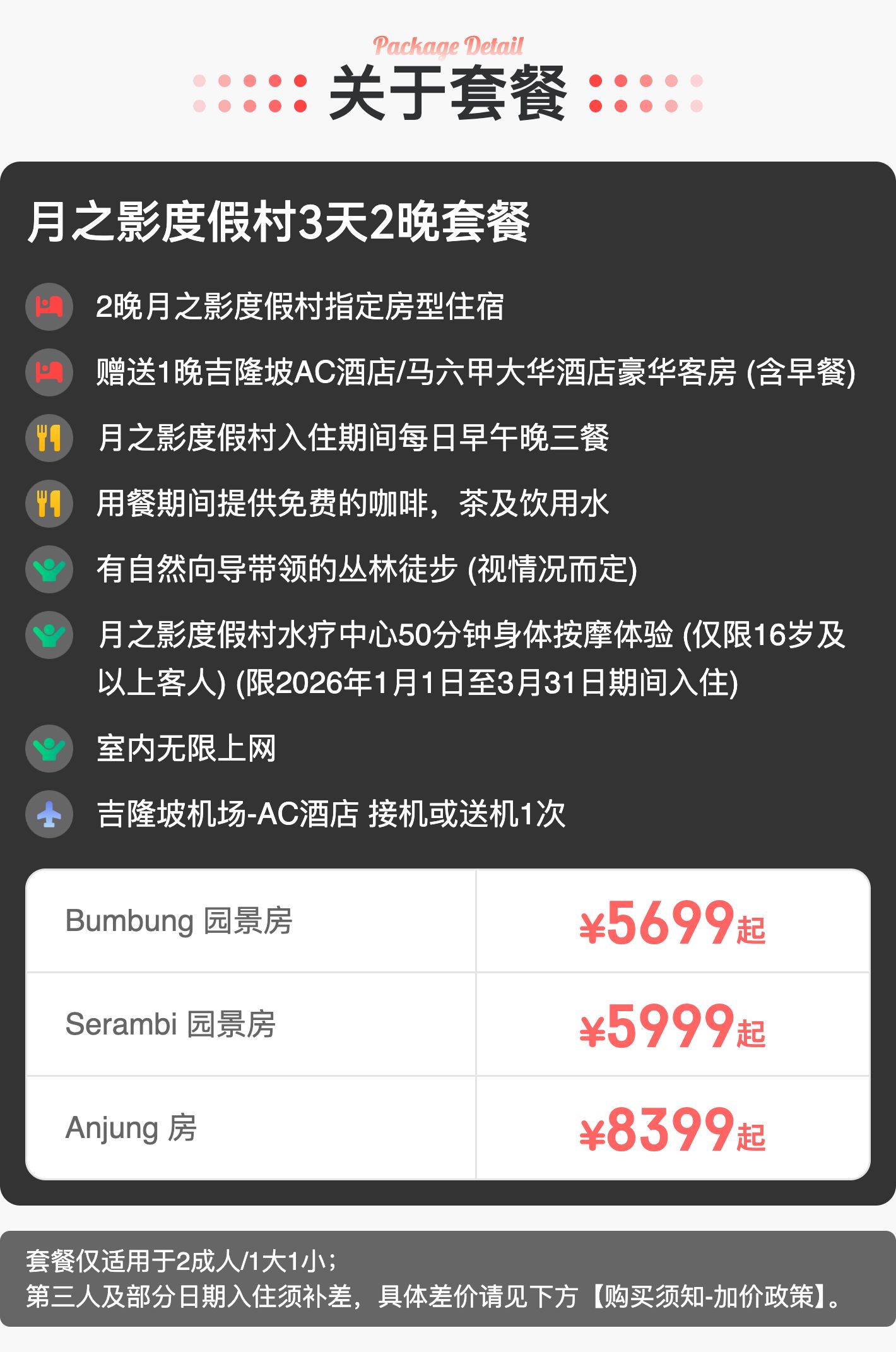 3天2晚【马来西亚月之影度假村】春节可用!全球奢华精品酒店!含月之影每日三餐、丛林徒步等,赠1晚吉隆坡/马六甲酒店含早住宿及吉隆坡接/送机,度假推荐~