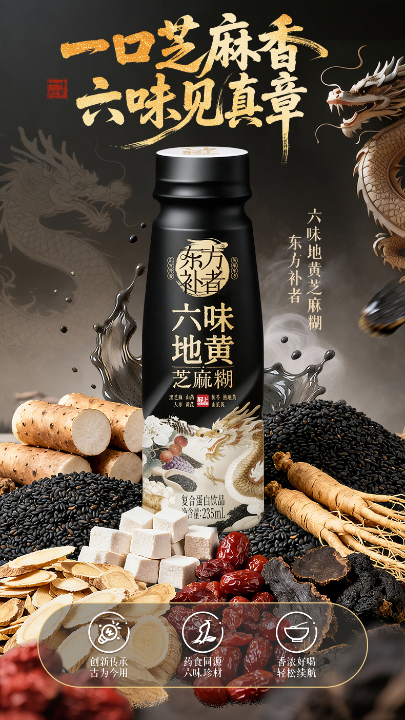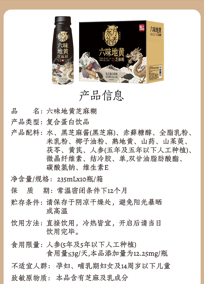轻上 东方补者六味地黄芝麻糊235ml*6瓶