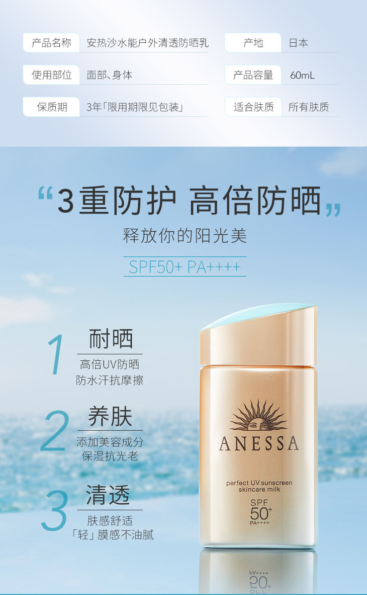 资生堂 安热沙 水能户外防晒乳 60ml