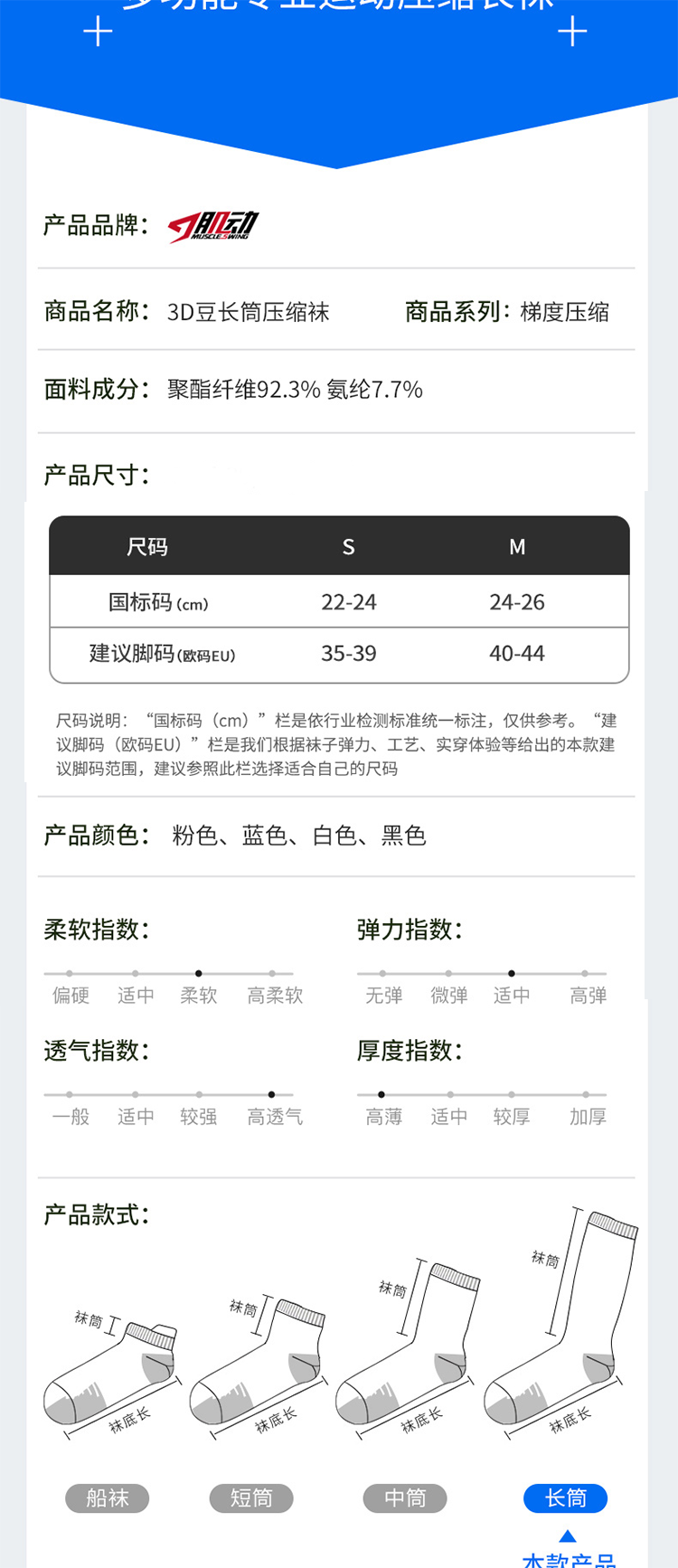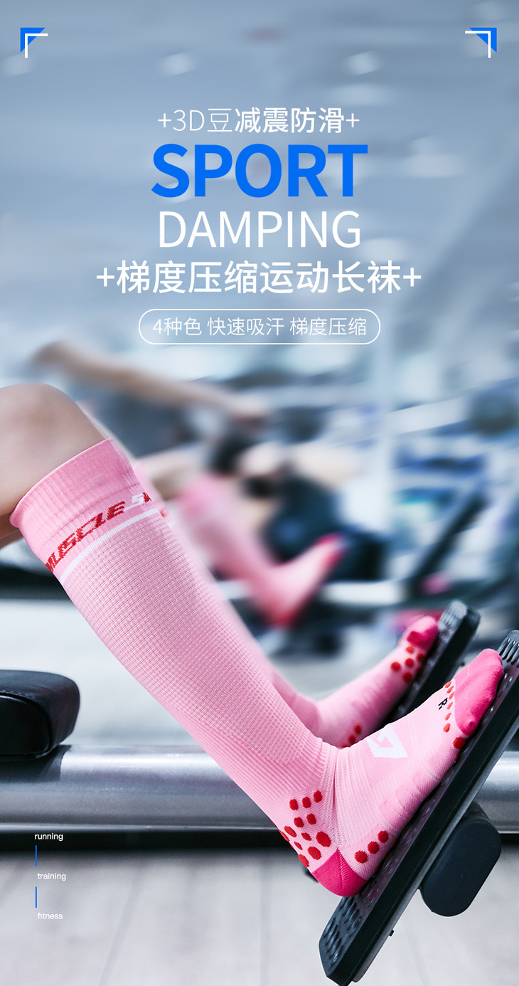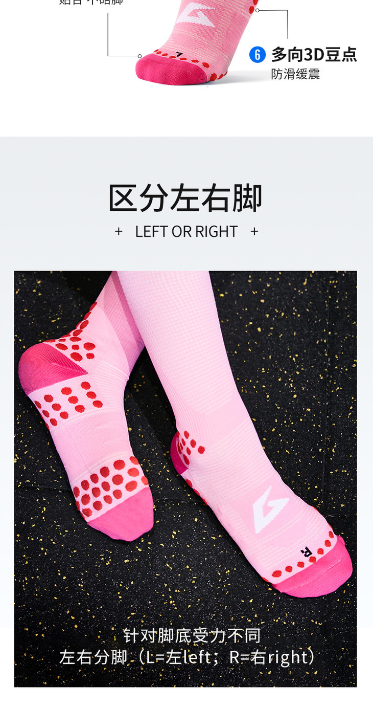 【券后69到手两双】806肌动3D豆长筒梯度压缩袜马拉松跑步袜防滑减震毛巾底运动袜两双装