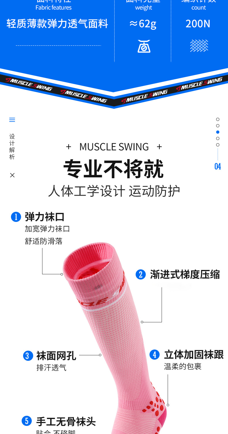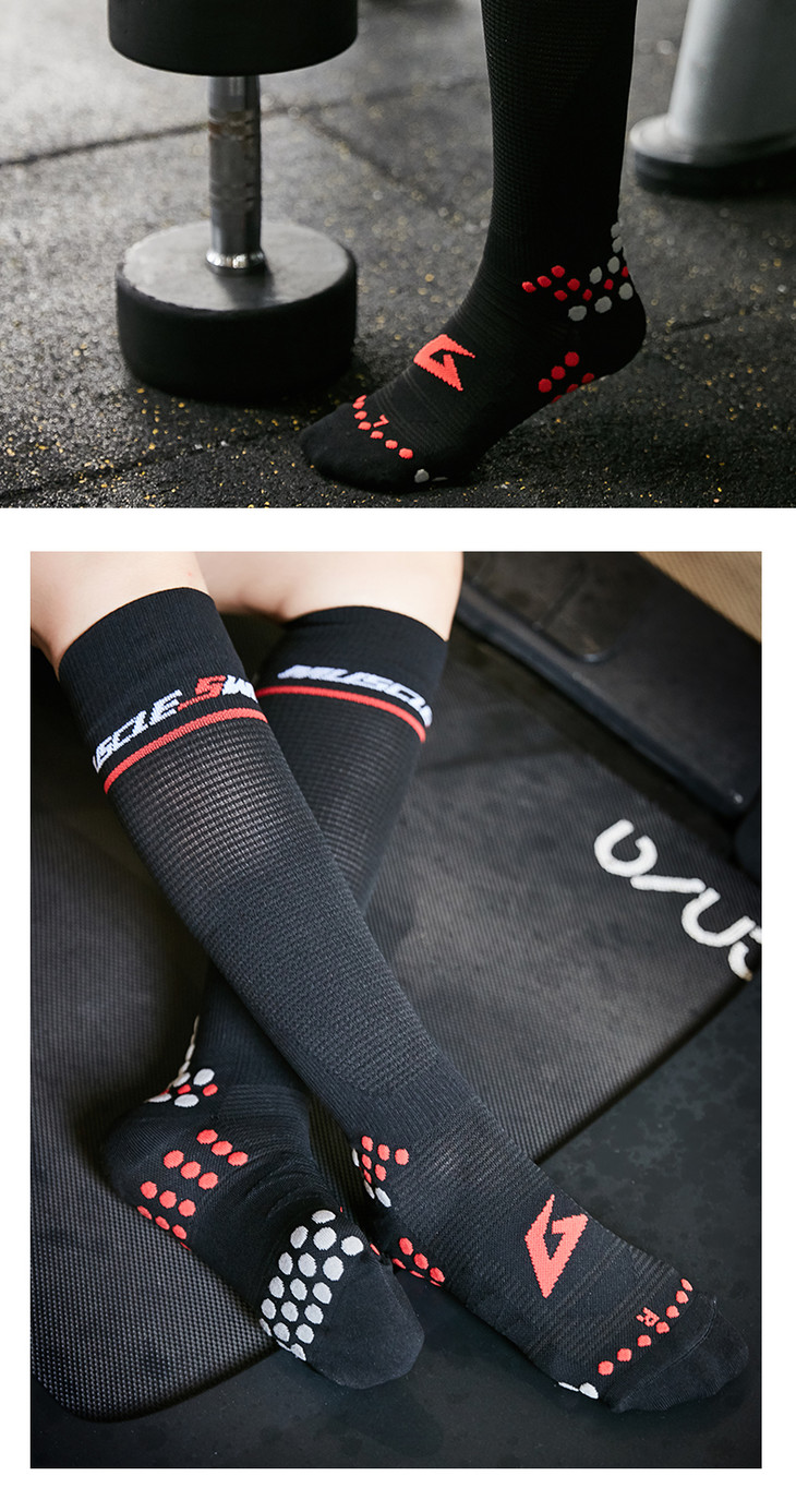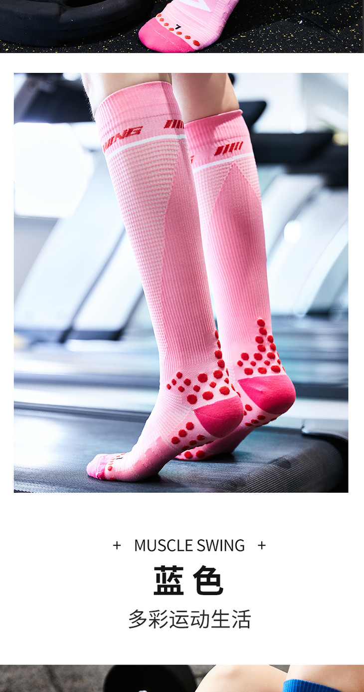 【券后69到手两双】806肌动3D豆长筒梯度压缩袜马拉松跑步袜防滑减震毛巾底运动袜两双装