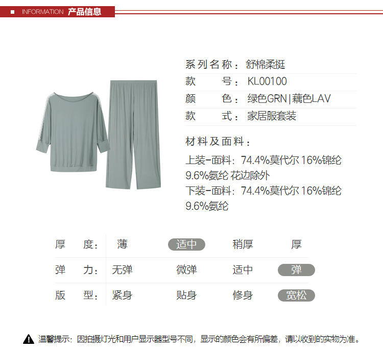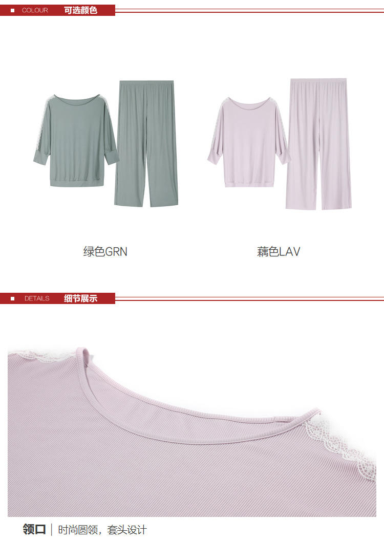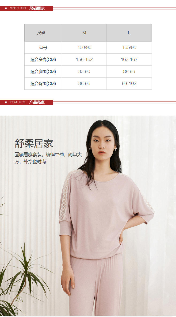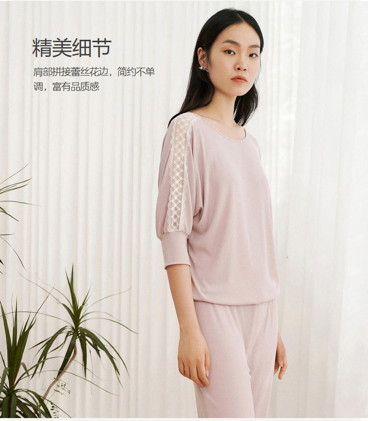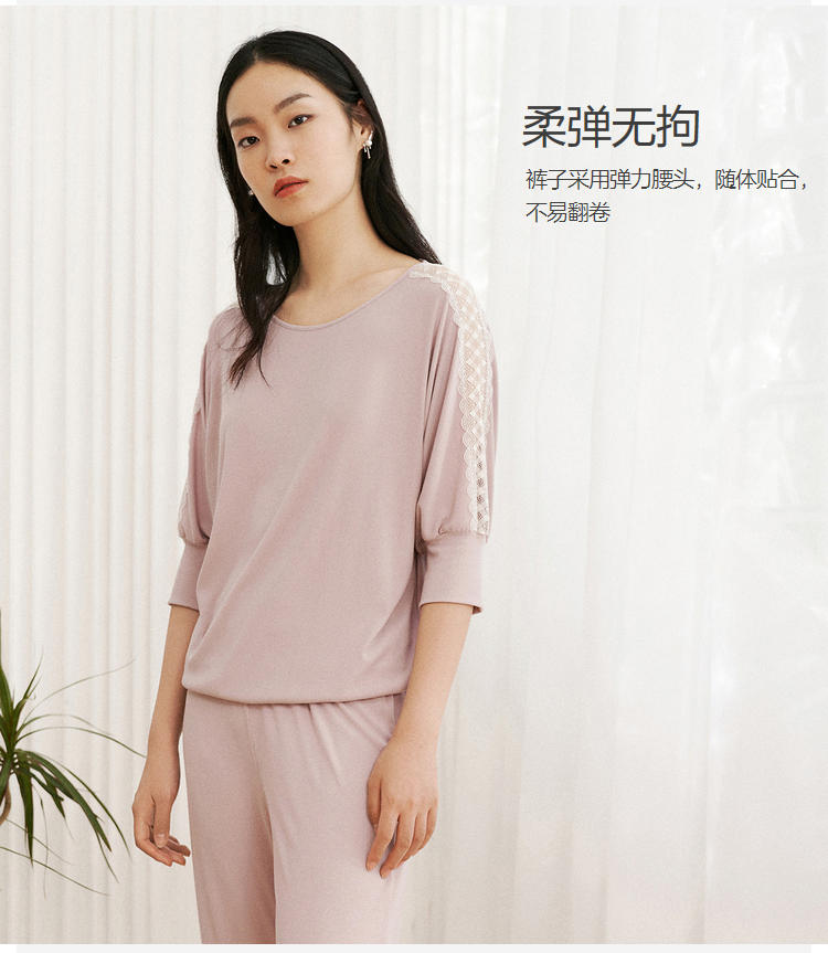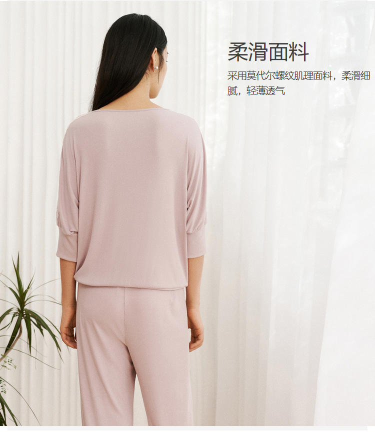安莉芳E-BRA安蓓佳新品莫代尔中袖长裤睡衣套装女家居服KL00100