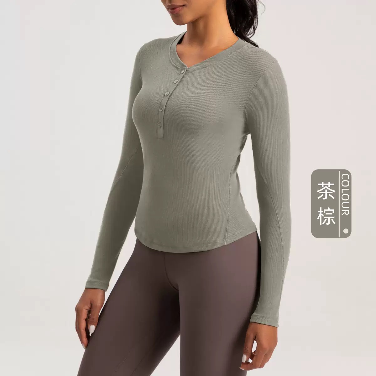 火桐hooton 运动系列 兰精莫代尔瑜伽高弹长袖亨利衫