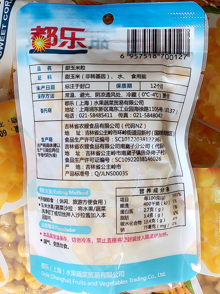 都乐甜玉米粒(60g)开袋即食