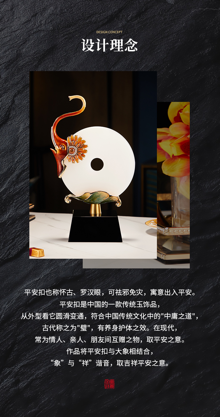 E-N-H0389/0390诺诗曼 向日葵吉象珐琅平安扣 摆件