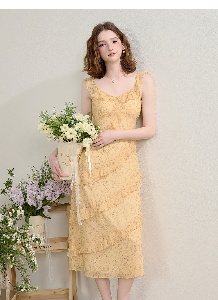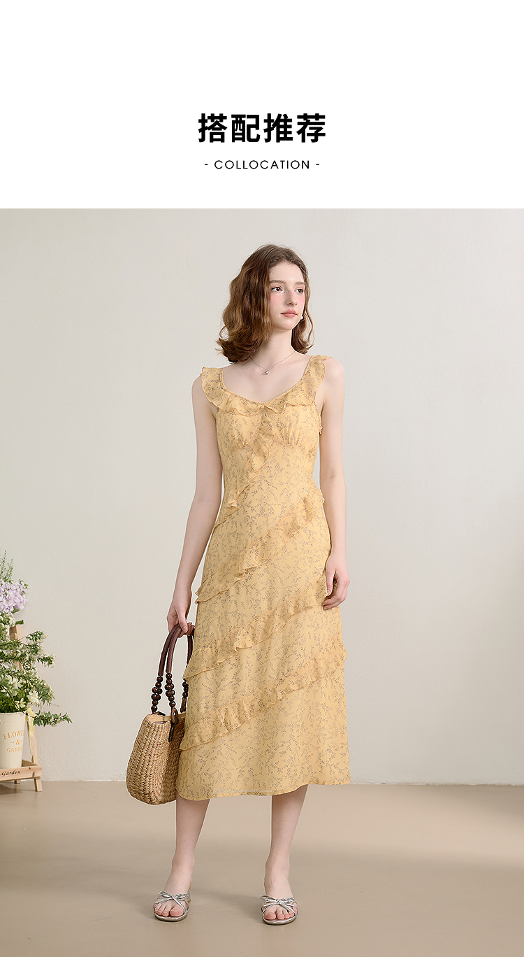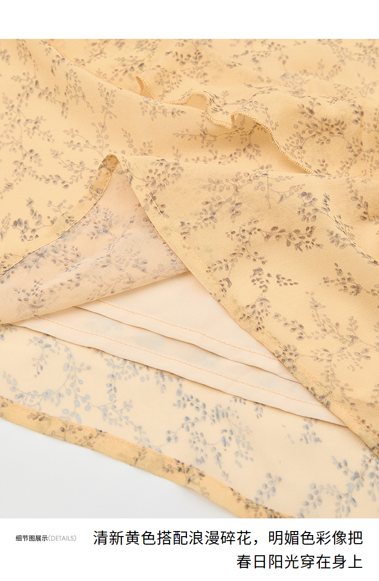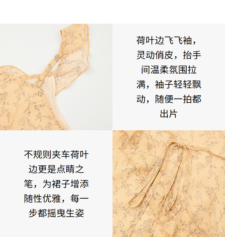 法式复古荷叶边飞飞袖碎花裙女夏季俏皮灵动V领连衣裙V0950345