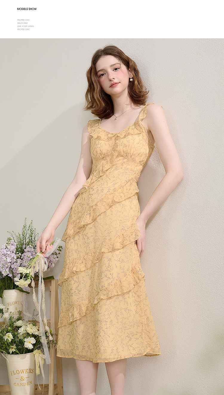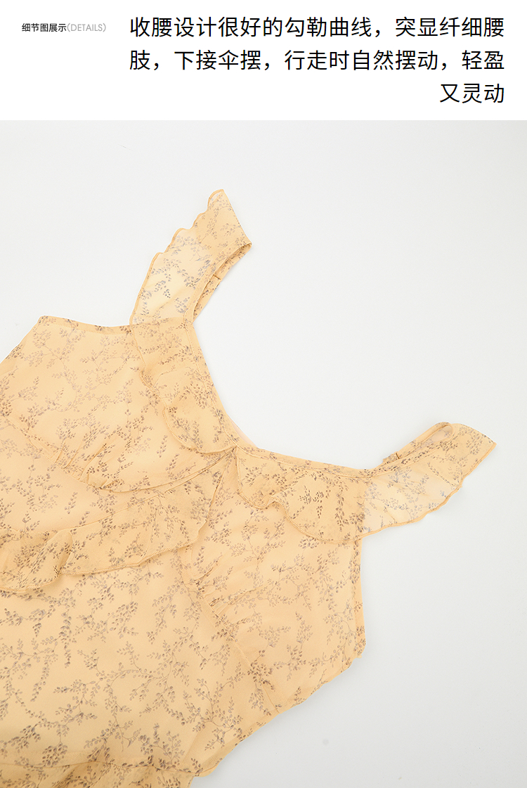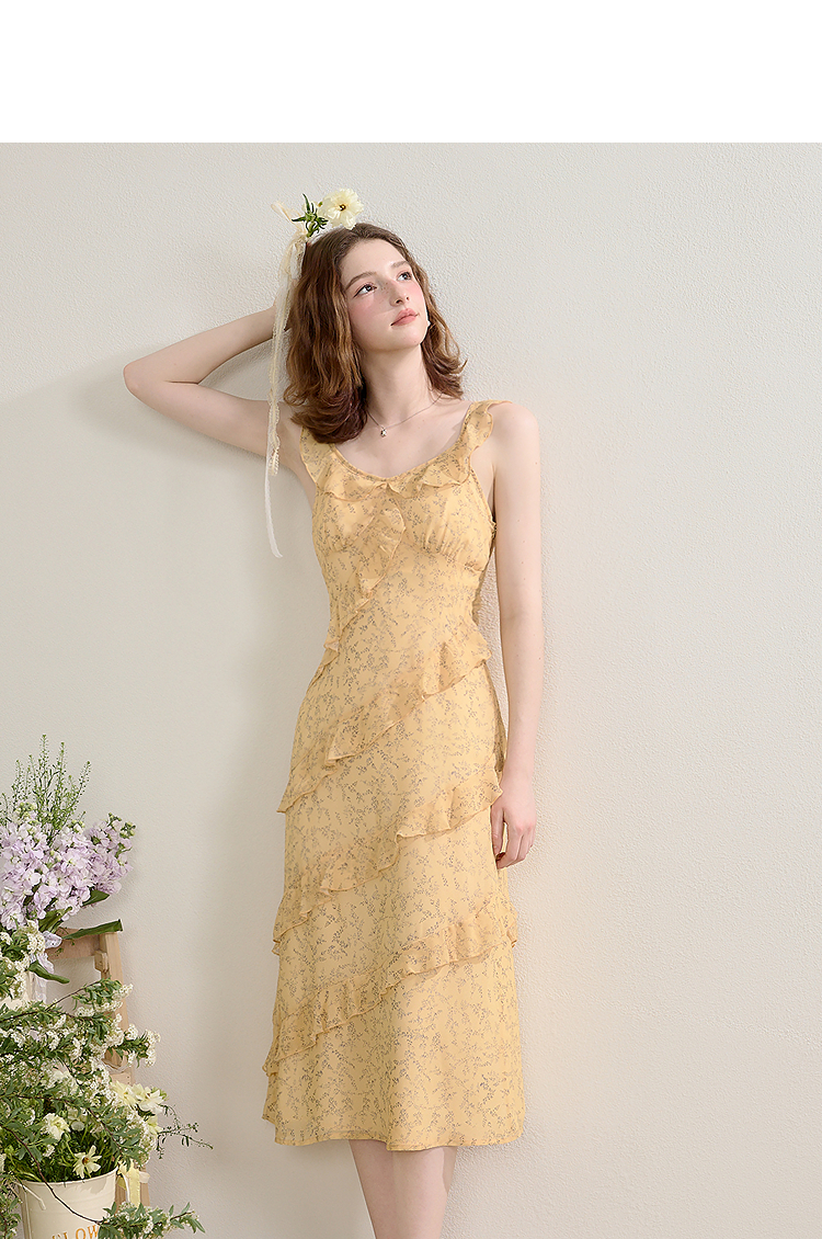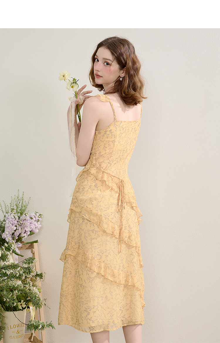 法式复古荷叶边飞飞袖碎花裙女夏季俏皮灵动V领连衣裙V0950345
