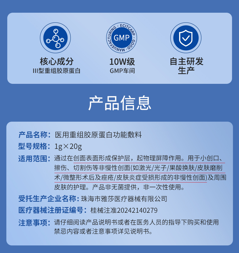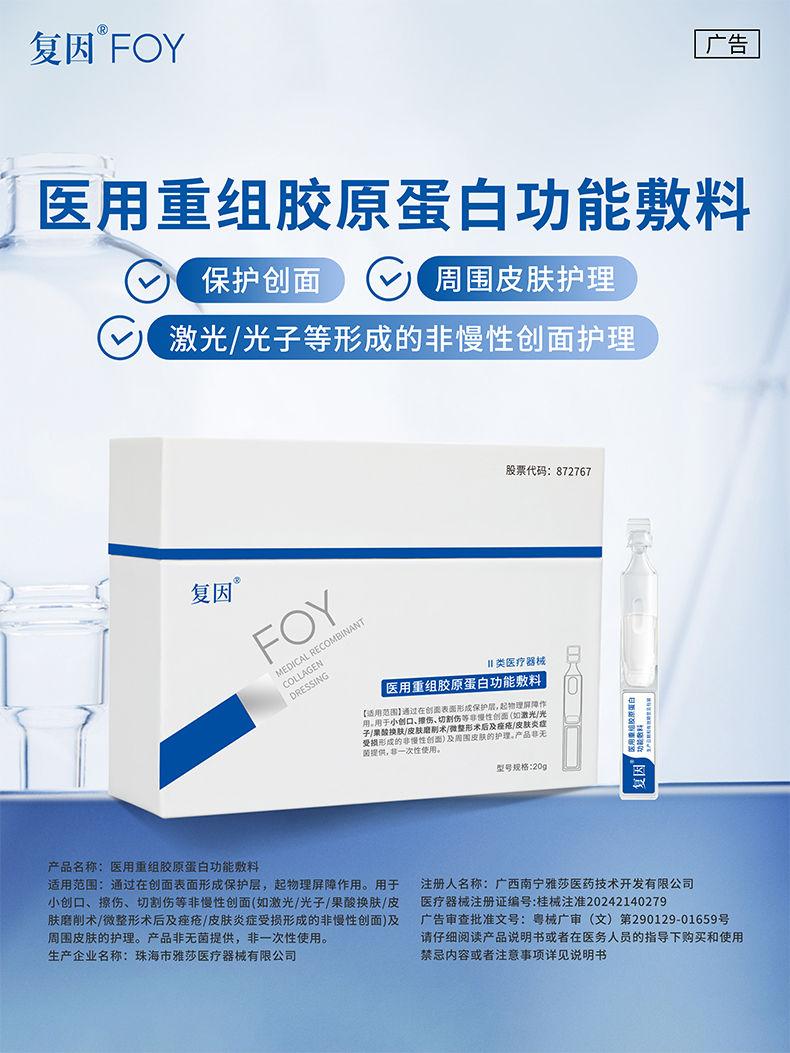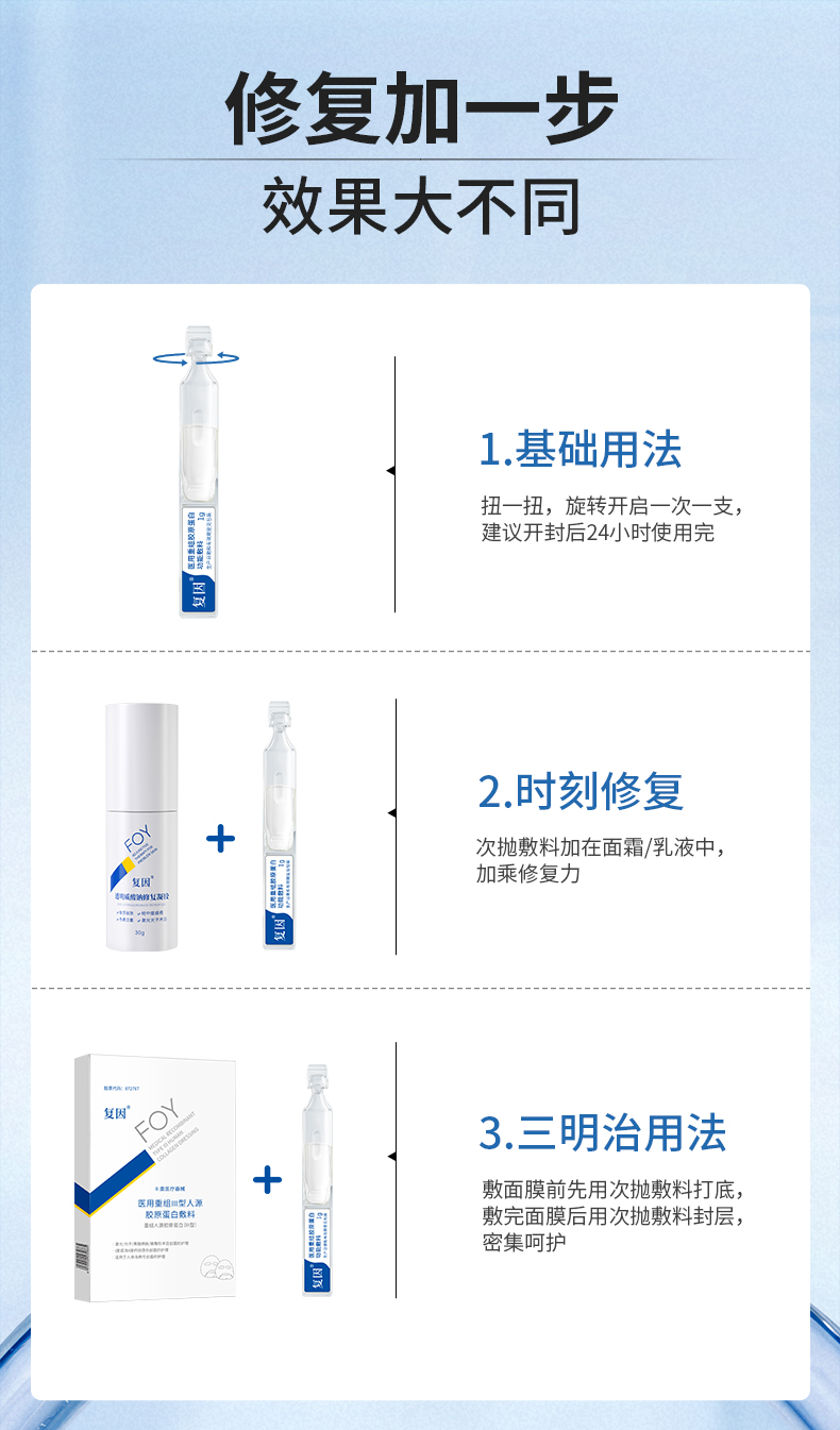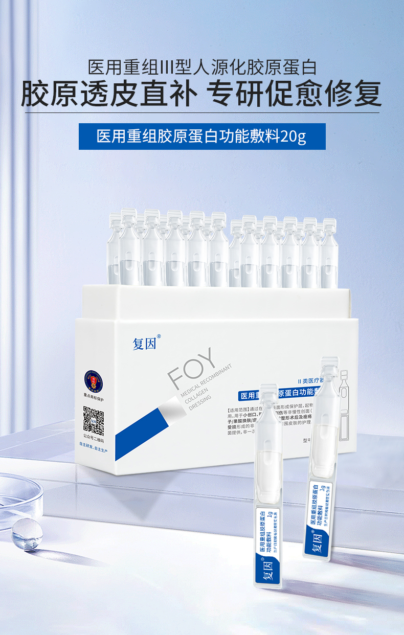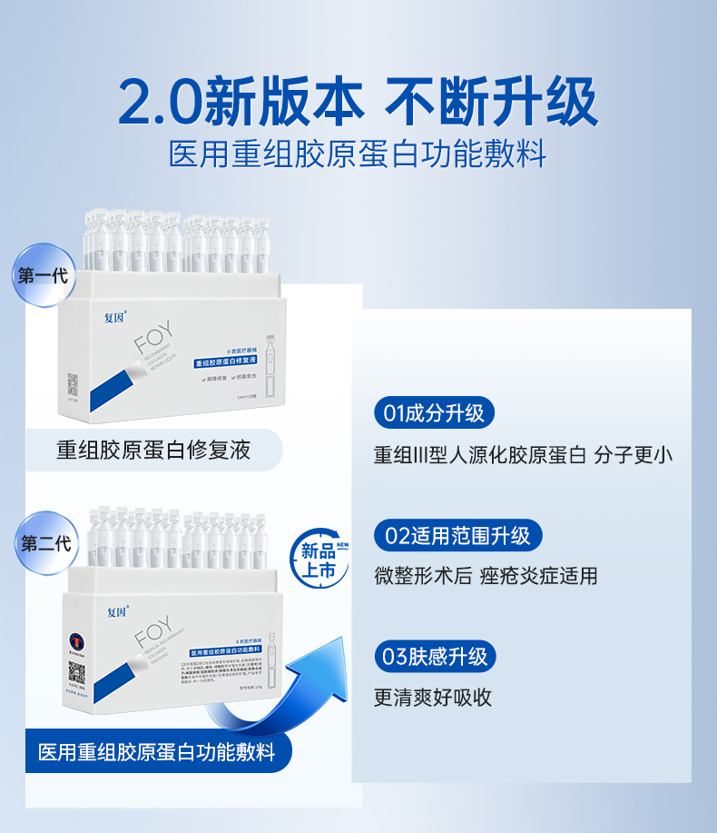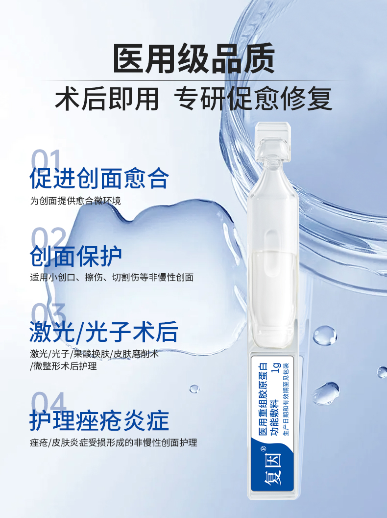 【升级2.0,加赠同款10支】】复因医用重组胶原蛋白功能敷料20支/盒 次抛精华(原修复液升级)保护创面皮肤护理***2件9折、3件8折