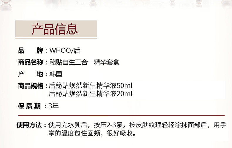 WHOO 后 秘贴焕然修护精华液礼盒5件套 韩国